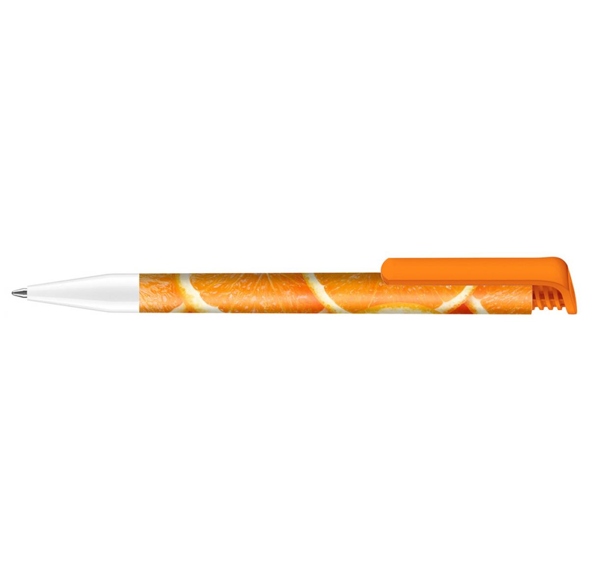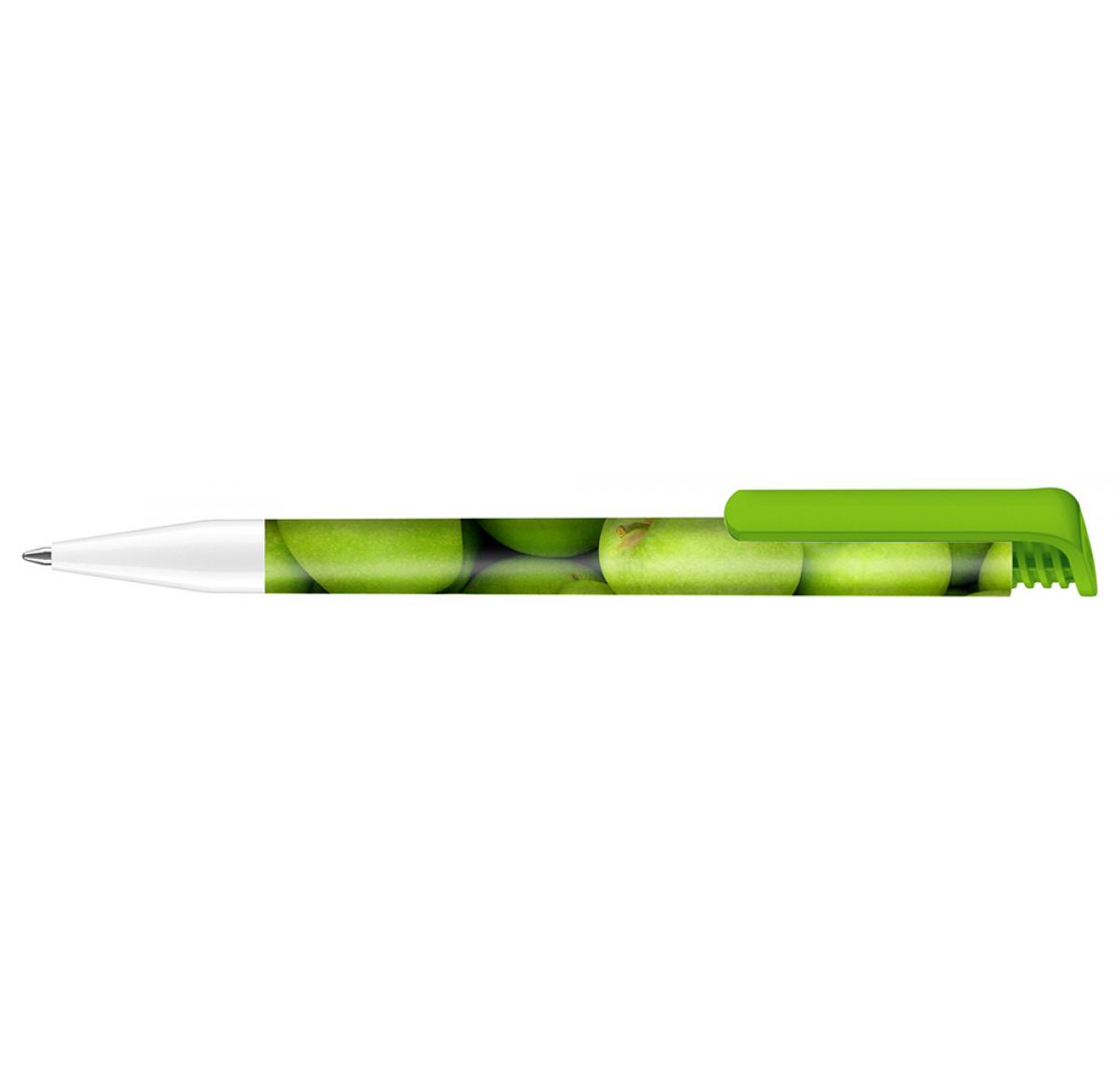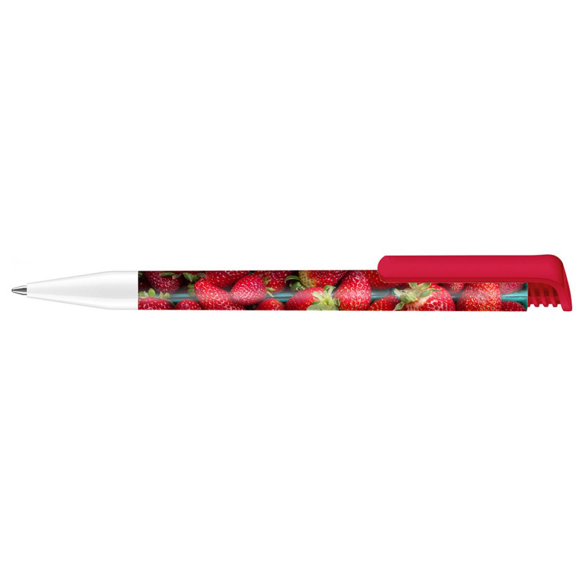 Evergreen and million seller. Opaque high-gloss finish ballpen with white barrel, featuring striking push-clip in one of 16 popular colours. Fitted with large capacity Magic Flow refill. Available with full colour digital wrap to the barrel - photo-quality print up to a maximum of 1200dpi to give your brand maximum impact. Also available as standard pen
