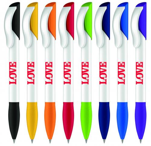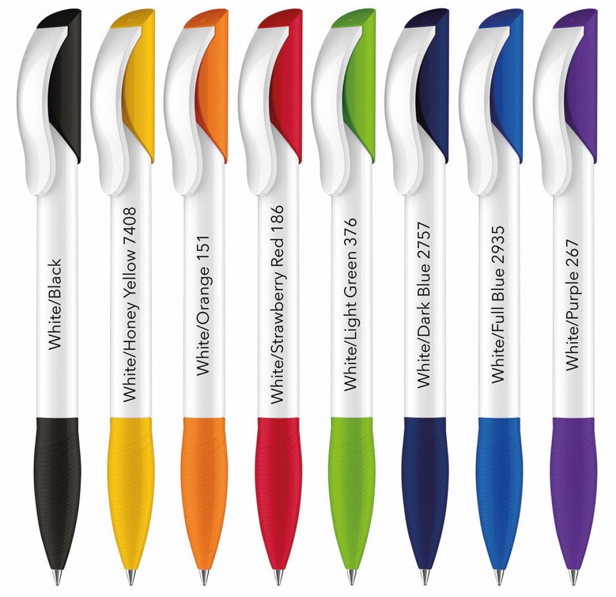 A cool look with a strong grip. Opaque high-gloss finish white barrel with matching coloured curved clip, upper and grip. Fitted with large capacity Magic Flow refill.