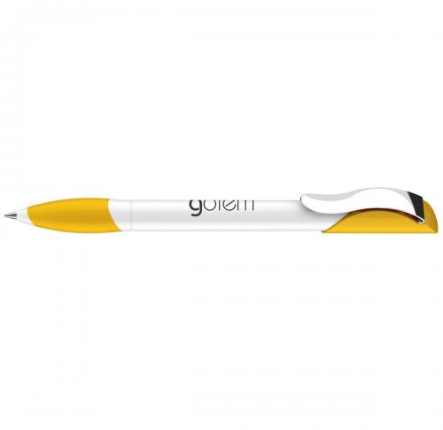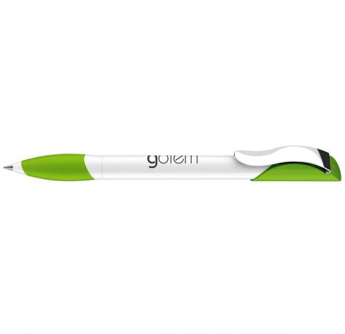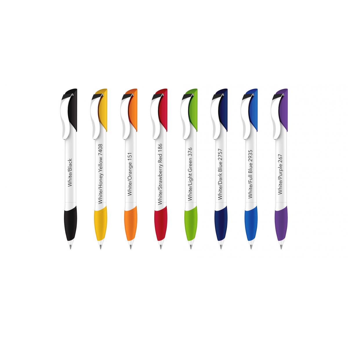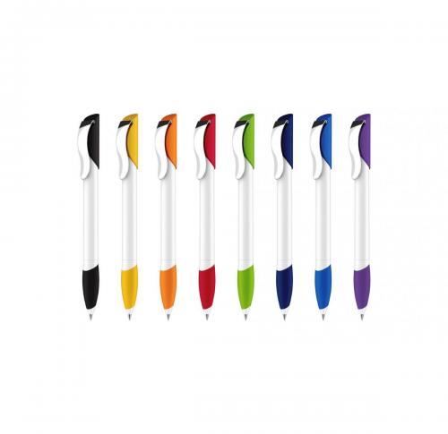 A cool look with a strong grip. Opaque high-gloss finish white barrel with matching coloured upper and soft-feel, satin-finish grip section, and metal clip. Fitted with large capacity Magic Flow refill.