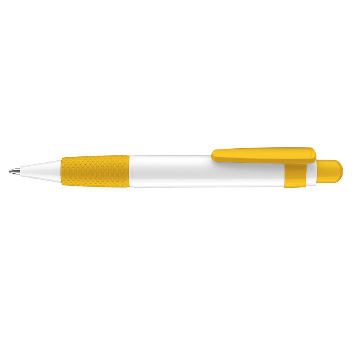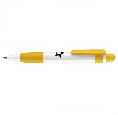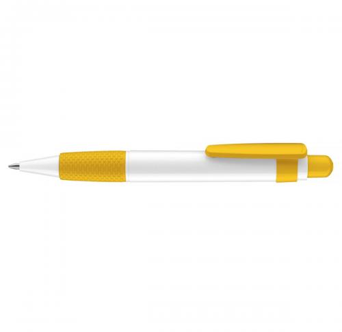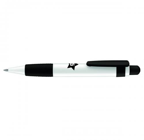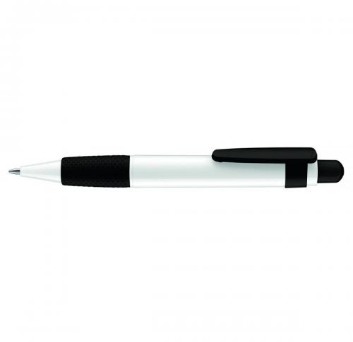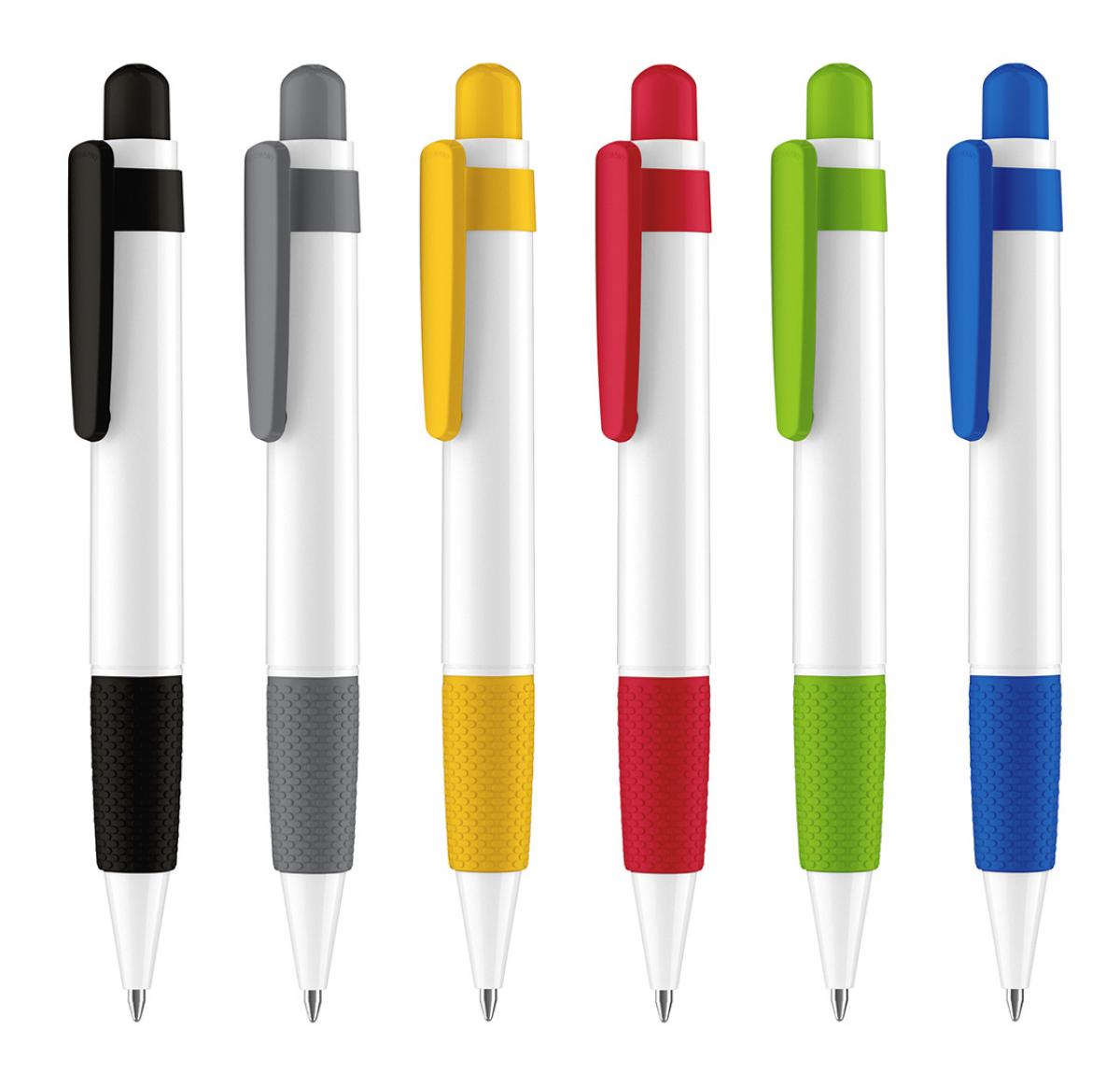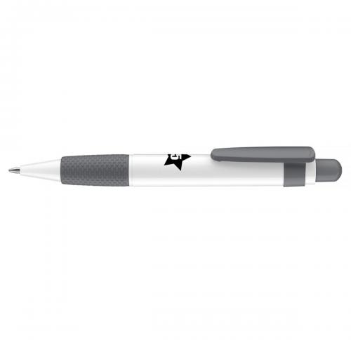 Impressive shape for awesome messages. Opaque high-gloss finish white barrel, with matching trim colours and soft grip. Ballpen with large capacity refill.