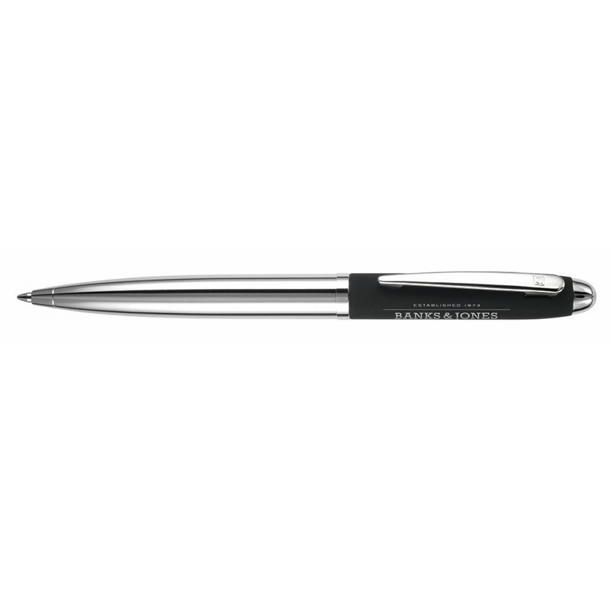 A winning combination of design and function. Ballpen with high-shine chrome barrel and clip, and soft-feel, satin-finish upper. Fitted with large capacity Magic Flow metal refill. Supplied in individual black card giftbox.