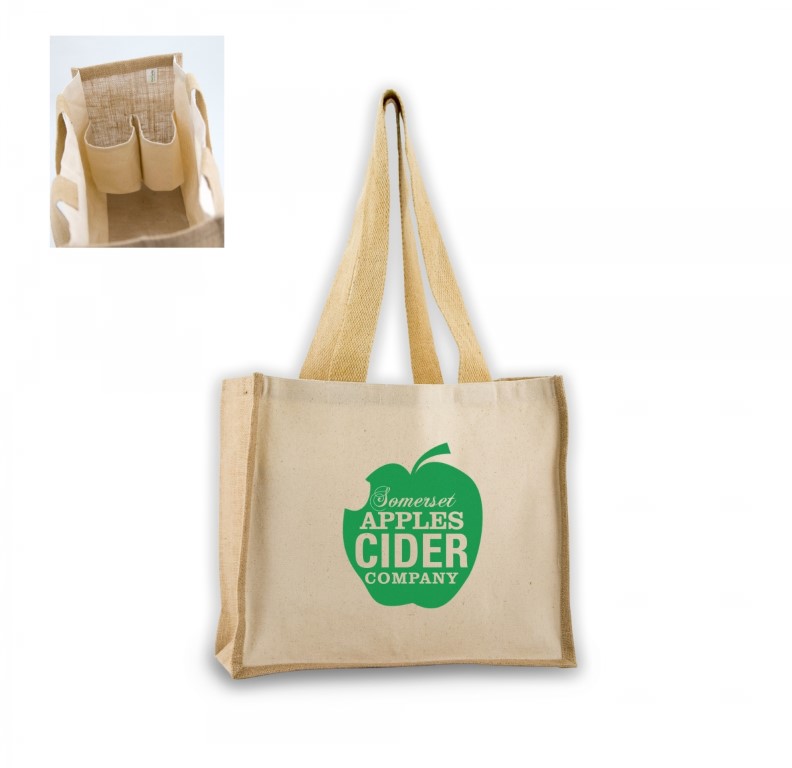 The Green & Good Bag for life with bottle holders, made from Jute and 10oz Canvas / cotton