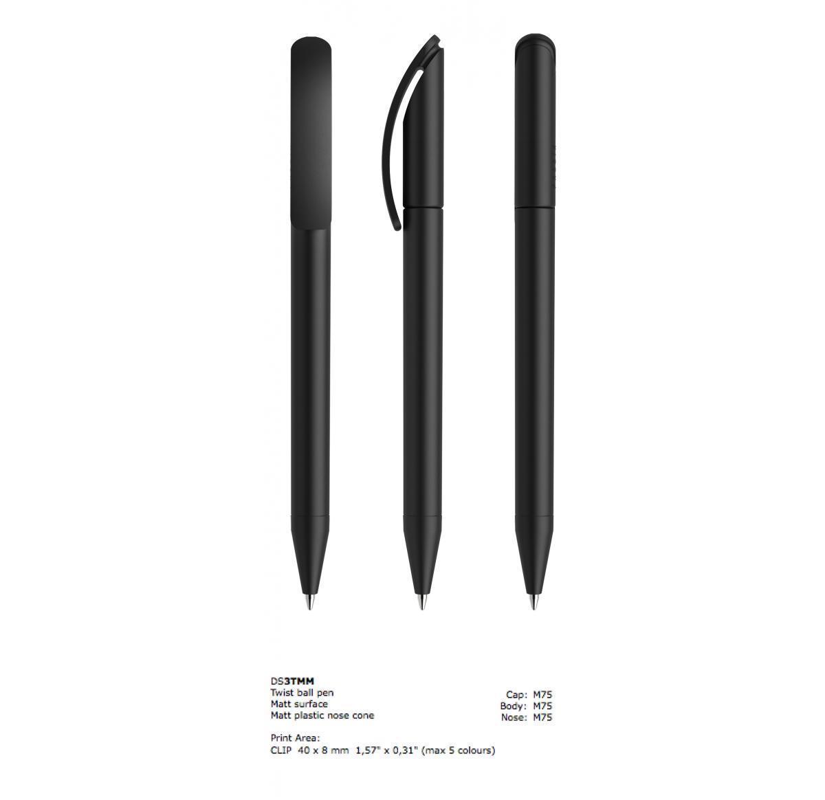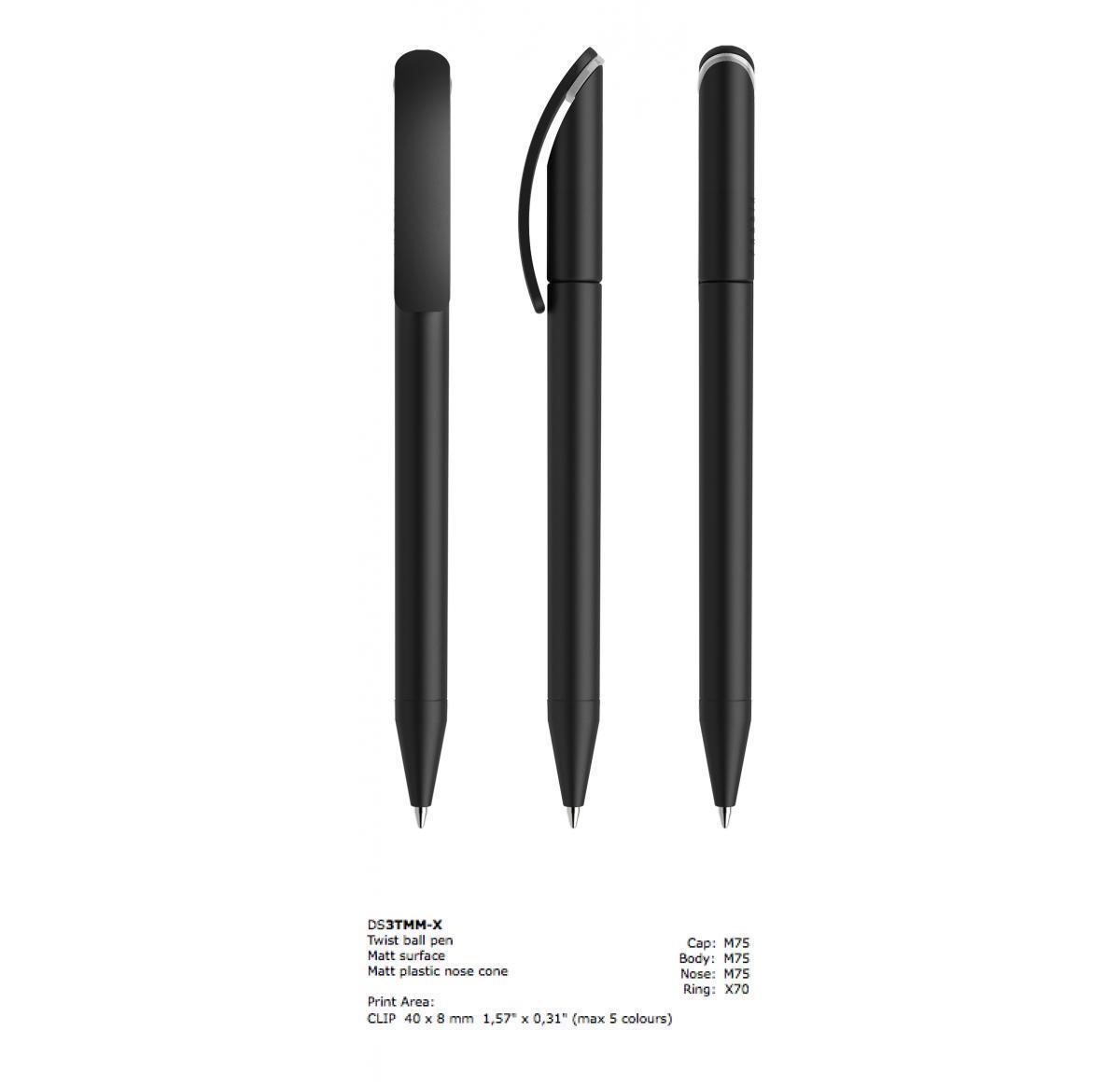 The DS3 is an iconic, timeless classic, the recognised industry-leader of quality promotional writing instruments. Twist-mechanism ball pen available in 7 finishes and up to 30 colours. Available in ECO version. Also available as a mechanical pencil. Coloured ring and metal nose available as an optional extra.