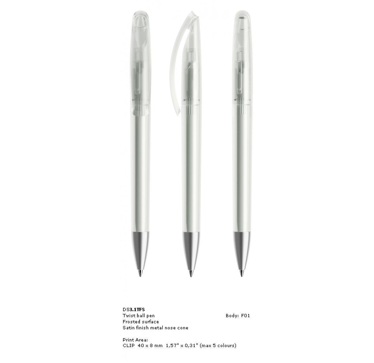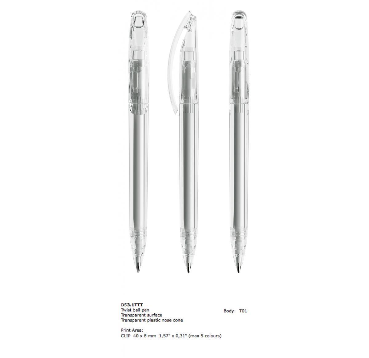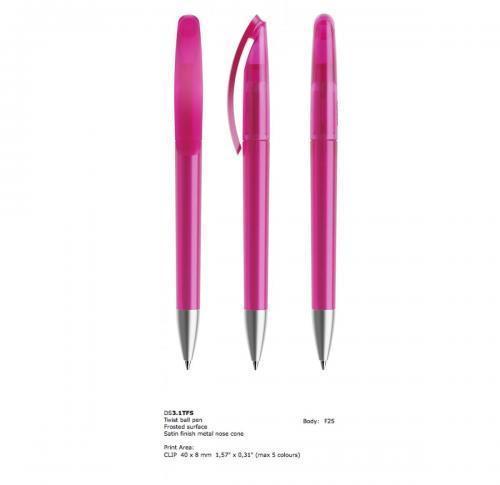 DS3.1, the design-led evolution of the iconic DS3, with a larger clip/print area, improved twist mechanism. Available in 15 colours with transparent, polished or Frosted finish. Metal nose cone available as an optional extra.