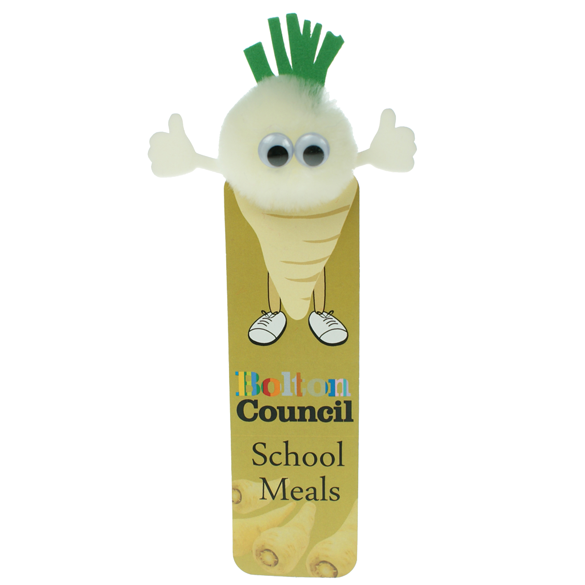 AB2 HEALTHY EATING PARSNIP BOOKMARK AD-BUGS: Colourful animal character bookmark that is hard to misplace! All included: Your choice of Bug, Animal and Bookmark printed up to Full Colour and all made the UK way. Easy Ordering options: Pick your BUG colour then your FACE style and send with your artwork and order SIMPLES!!