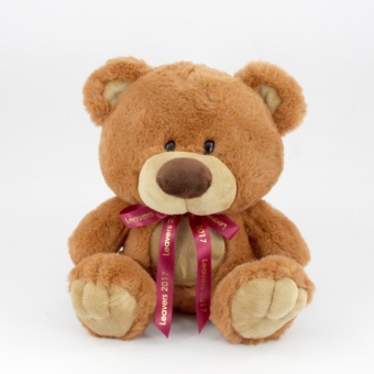 Promotional 25cm Charlie Soft Plush Teddy Bear Caramel With Printed Bow