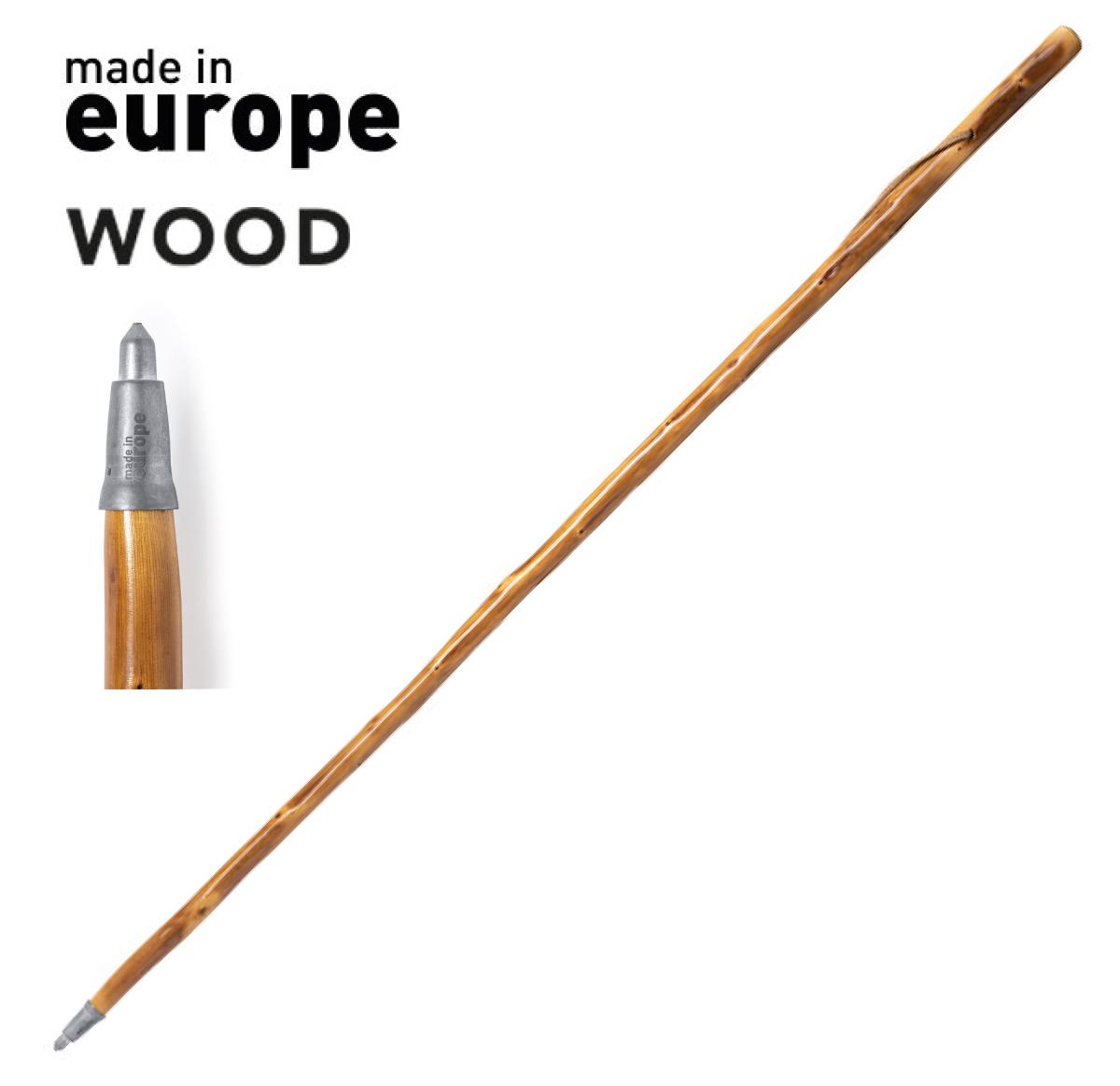 Traditional walking stick, made in resistant and flexible natural wood. With metal tip and Made In Europe logo.