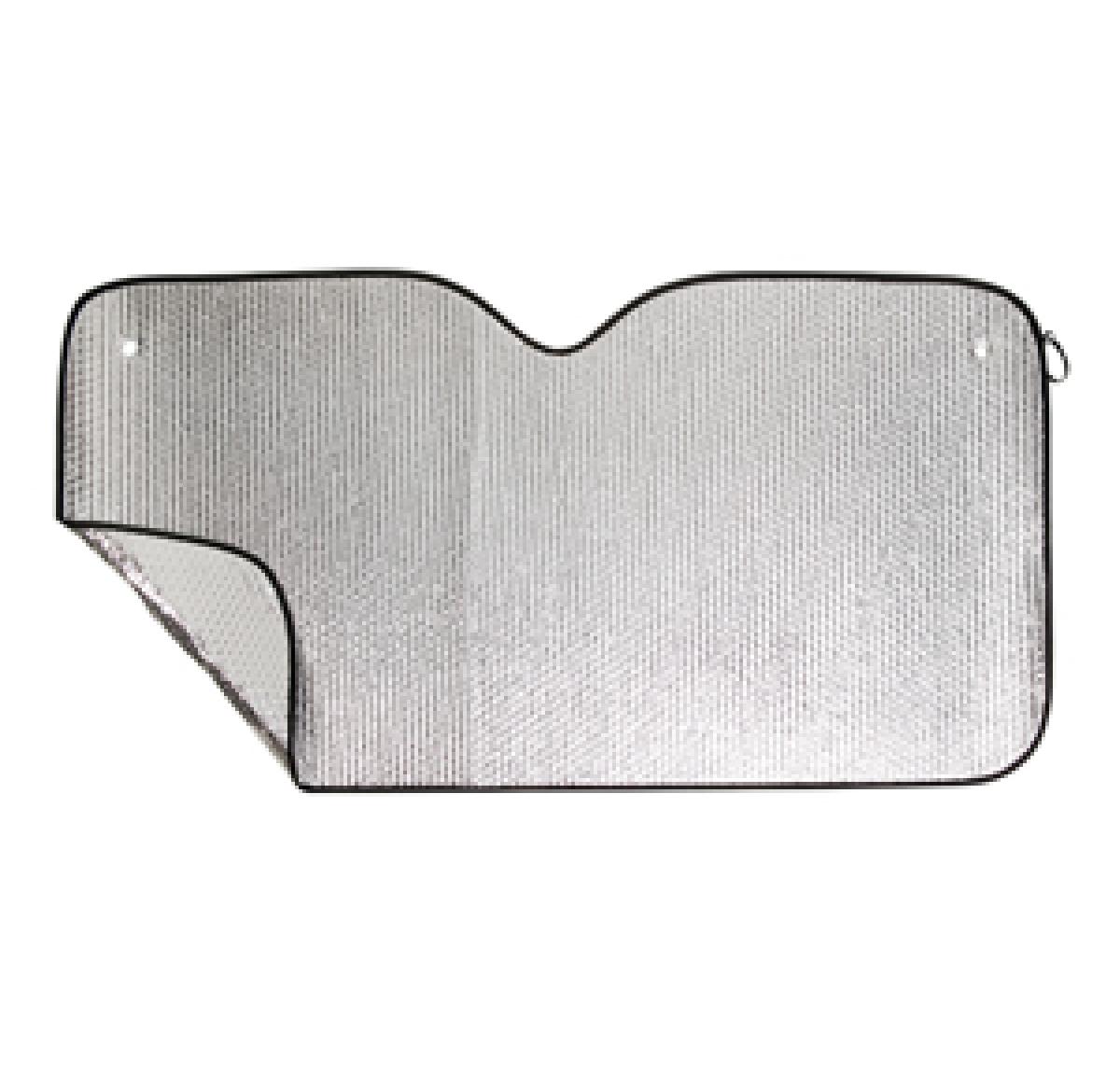 Double sided two bubble aluminium sun shade for use on your car window. This large window protector is silver with a black trim and comes with two suction cups for adhesion. Item can only be ordered in full boxes (50's).