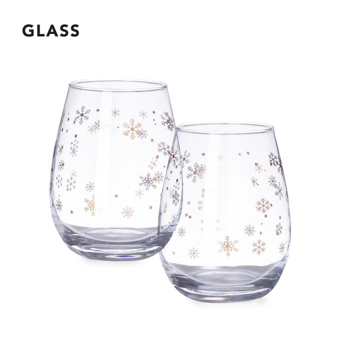 Set of 2 glasses with original snowflake design and 500ml capacity. Made of glass, with special branding area at the front. Presented in a black design box with a golden illustration.