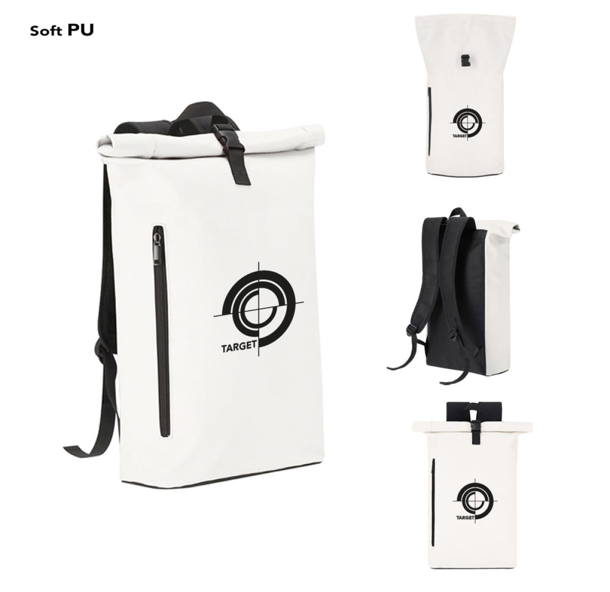 Backpack in soft PU. With main pocket and buckle closure system. Large capacity inside, with a padded compartment for laptops up to 15 inches. Padded back. Adjustable and padded handles.