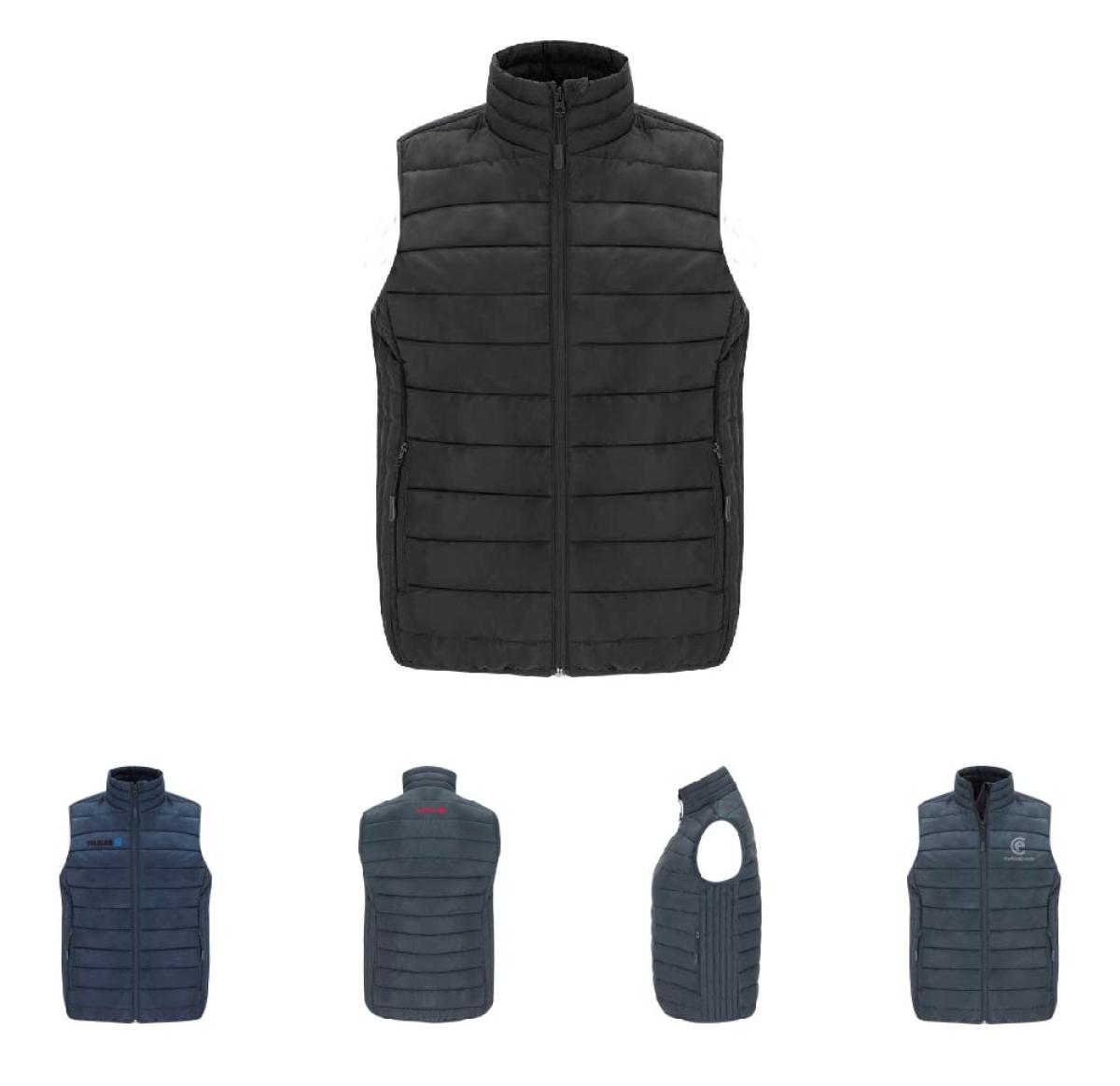 Women's quilted vest in extra lightweight, compact, slim fit material. Waterproof and windproof, with soft padding and inner lining. Reverse zip fastening and matching zip puller. 2 side pockets with zips and matching puller and 2 inside pockets. Elastic waist and armholes with matching elastic piping. Comes with a practical carrying pouch.