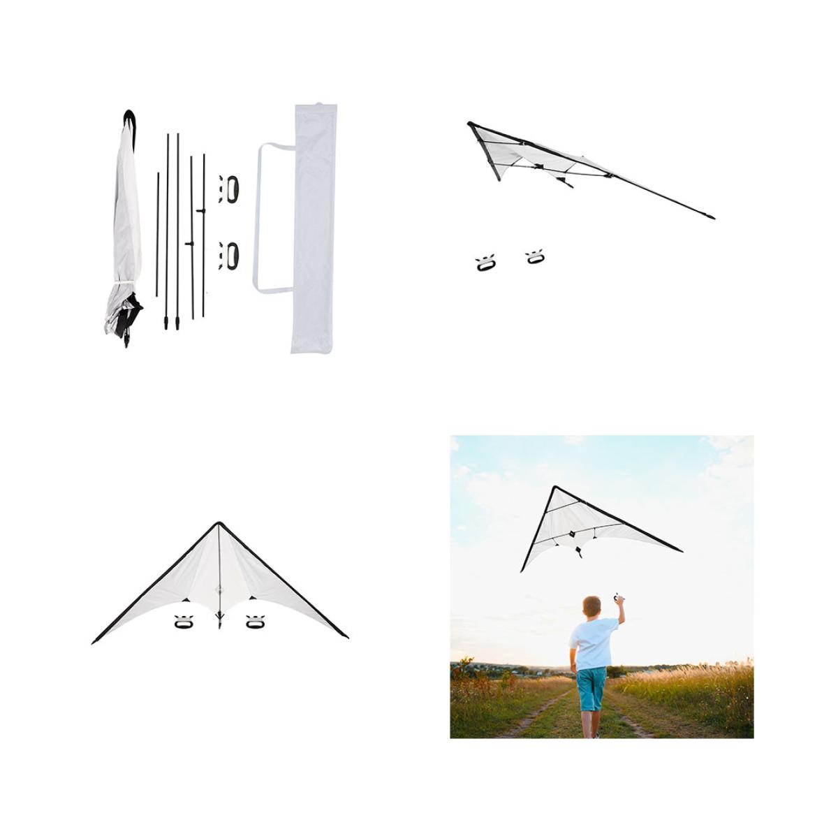 Delta kite made of durable RPET Ripstop 210T polyester. With fibreglass structure that provides stability and ease of assembly. Includes 2 plastic handles with line for versatile handling and precise control during flight. Includes a practical RPET transport bag with handle, perfect for carrying it comfortably anywhere. The RPET material is made from recycled plastic, promoting the reuse of plastic waste and helping to sustain the planet.