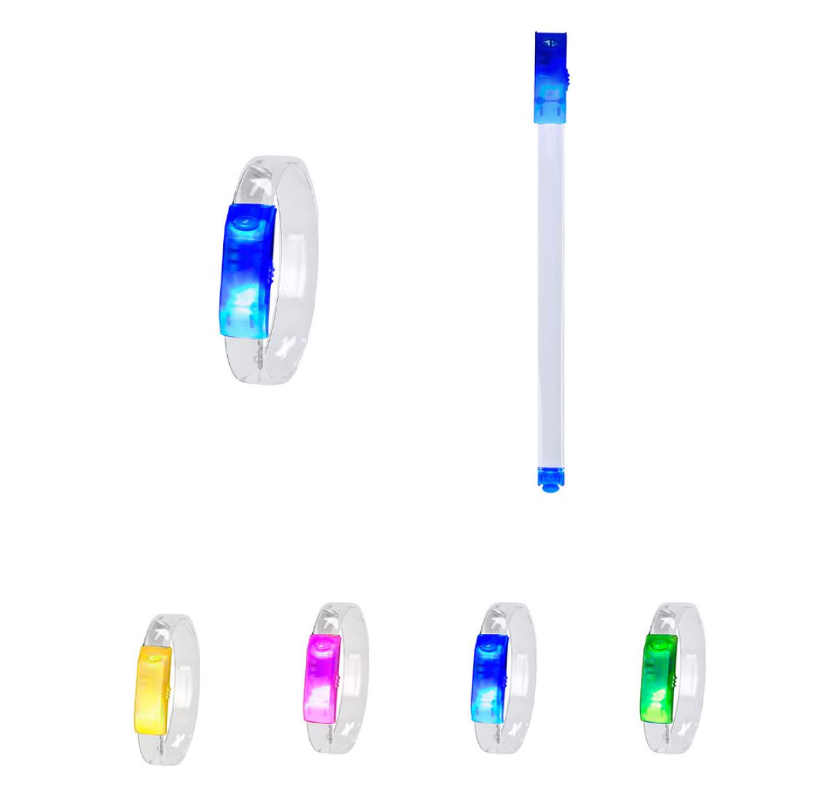 Original bracelet with LED lights, ideal for parties, night events, or themed celebrations. Its strap creates an eye-catching and original luminous effect powered by button batteries -included-. With discreet on/off switch on the side.