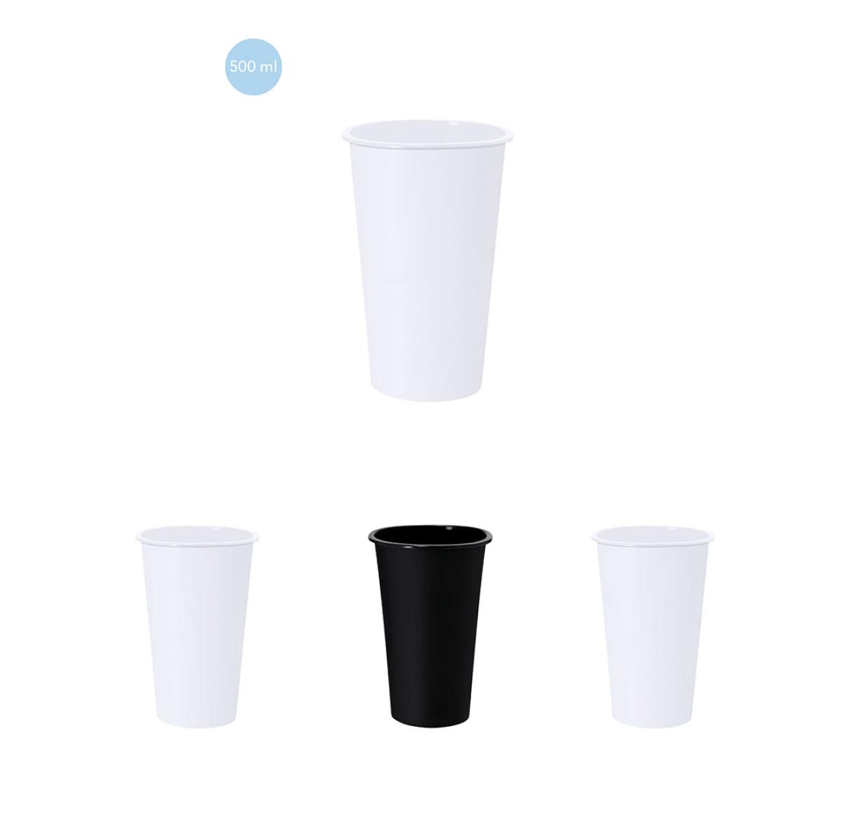 550 ml capacity cup made from PP material. Transparent colour with frosted finish. White and black in solid finish.