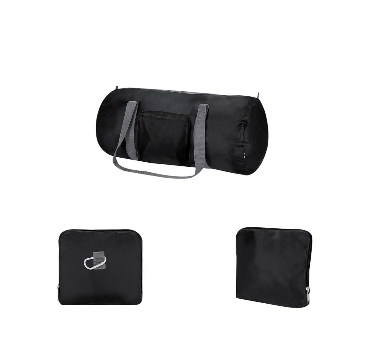 Folding bag made of 290T RPET. With a zipper closure and accessories in grey and black colours. Includes a carabiner for easy transport. Includes RPET label. RPET material is made from recycled plastic to promote the reuse of plastic waste and help the planet's sustainability.