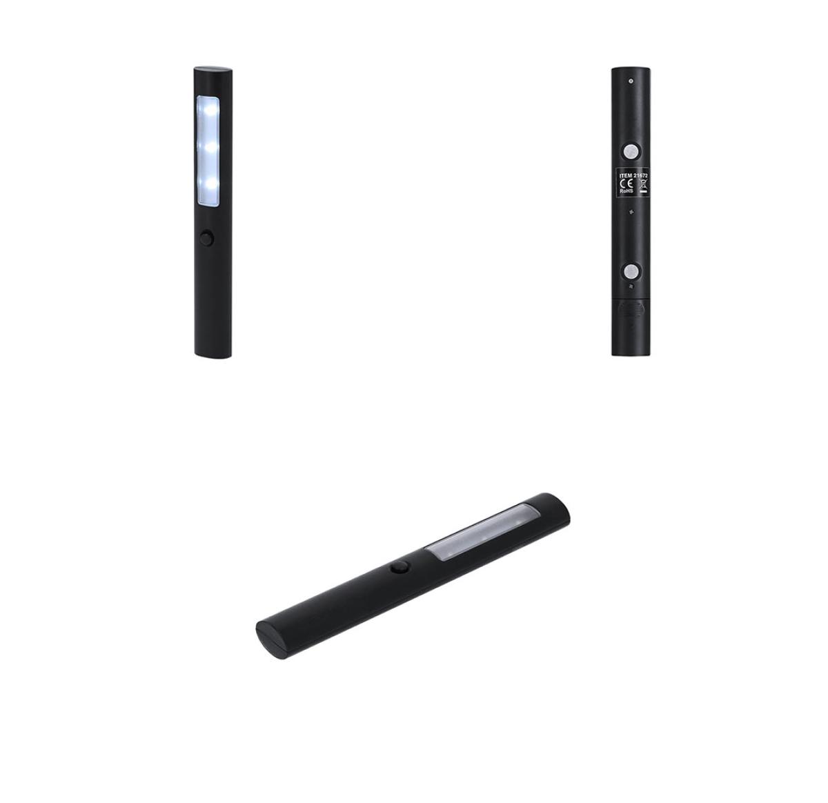 3 LED flashlight with durable ABS body, with button on the front and practical magnets on the back. Powered by button batteries included.