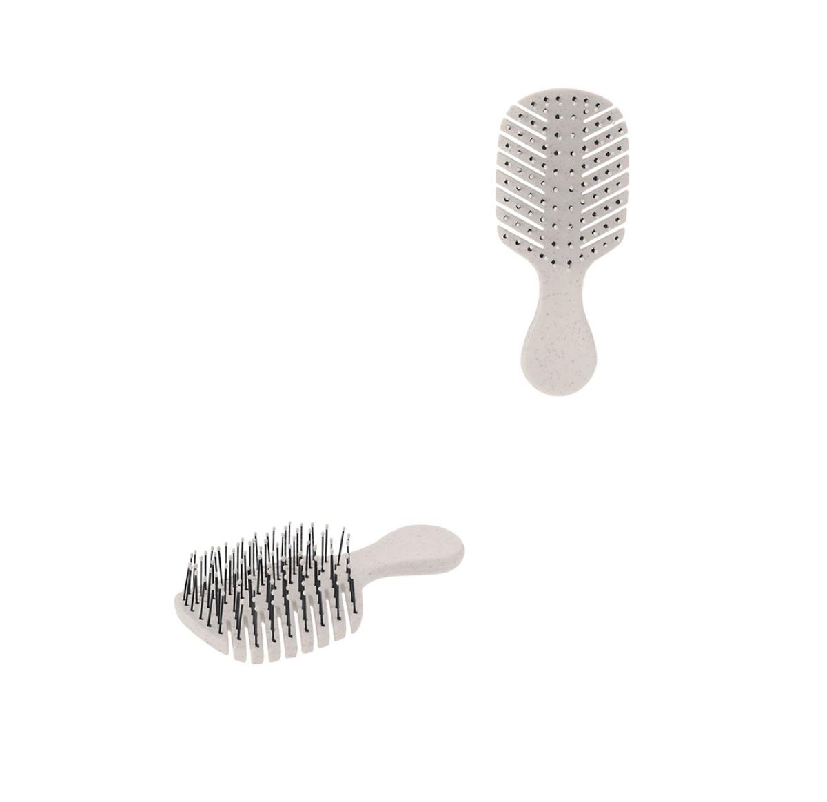Anti-tangle and detangling brush made of wheat straw. With an anti-tangle system, flexible and resistant, allowing any type of hair to be detangled with maximum softness. With an ergonomic design thanks to its semi-curved shape and long bristles, it adapts perfectly to the contour of the head, making it easy to style a greater amount of hair with each pass. Wheat straw promotes the use of natural raw materials, thus reducing polluting emissions.