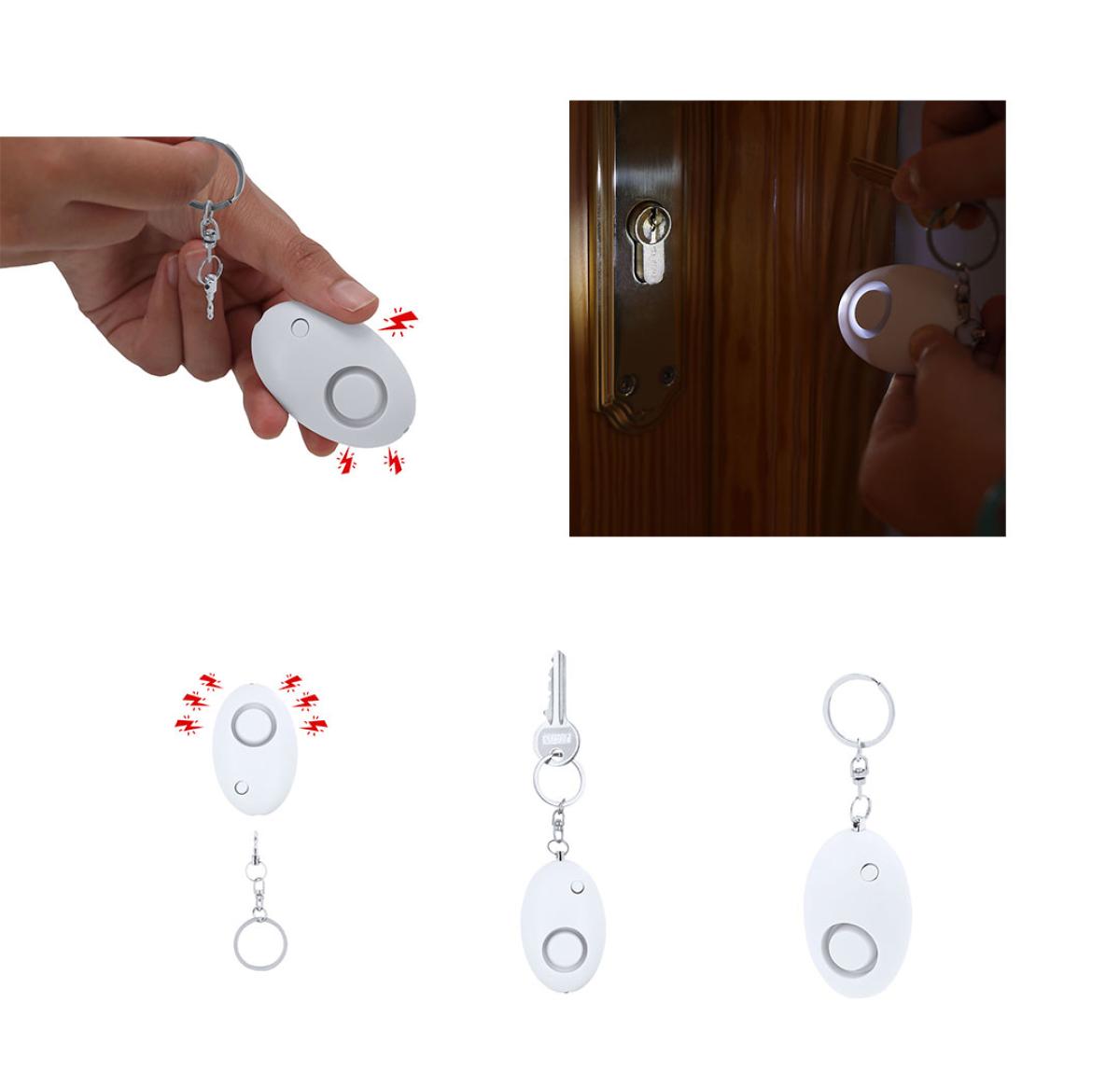 Personal alarm with LED flashlight, equipped with a loud volume bell to alert emergencies. With simple activation through a pull ring system that activates the alarm immediately. Incorporates an LED flashlight, ideal for providing lighting in low visibility conditions. Includes a carabiner and a metal ring for easy attachment to bags, backpacks, or keychains, etc. Powered by button batteries (included).