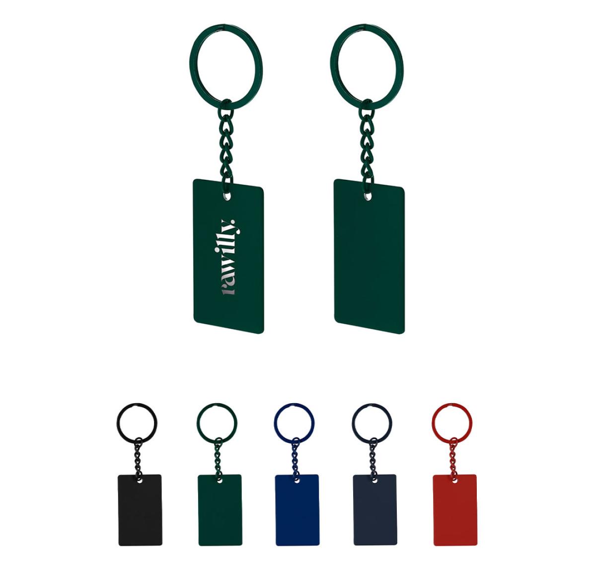 Stainless steel keychain with a rubber finish. It is ideal for laser marking.