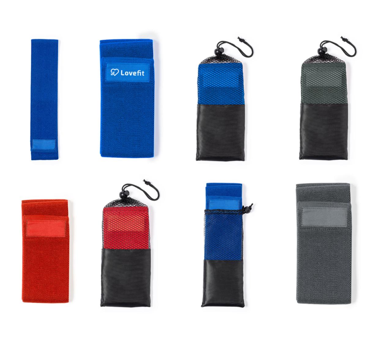Elastic band for fitness. Made in a combination of polyester and high quality latex. Medium resistance and available in a wide range of colours. Presented in a mesh pouch with drawstring and adjuster. Including instruction manual in English and Spanish.