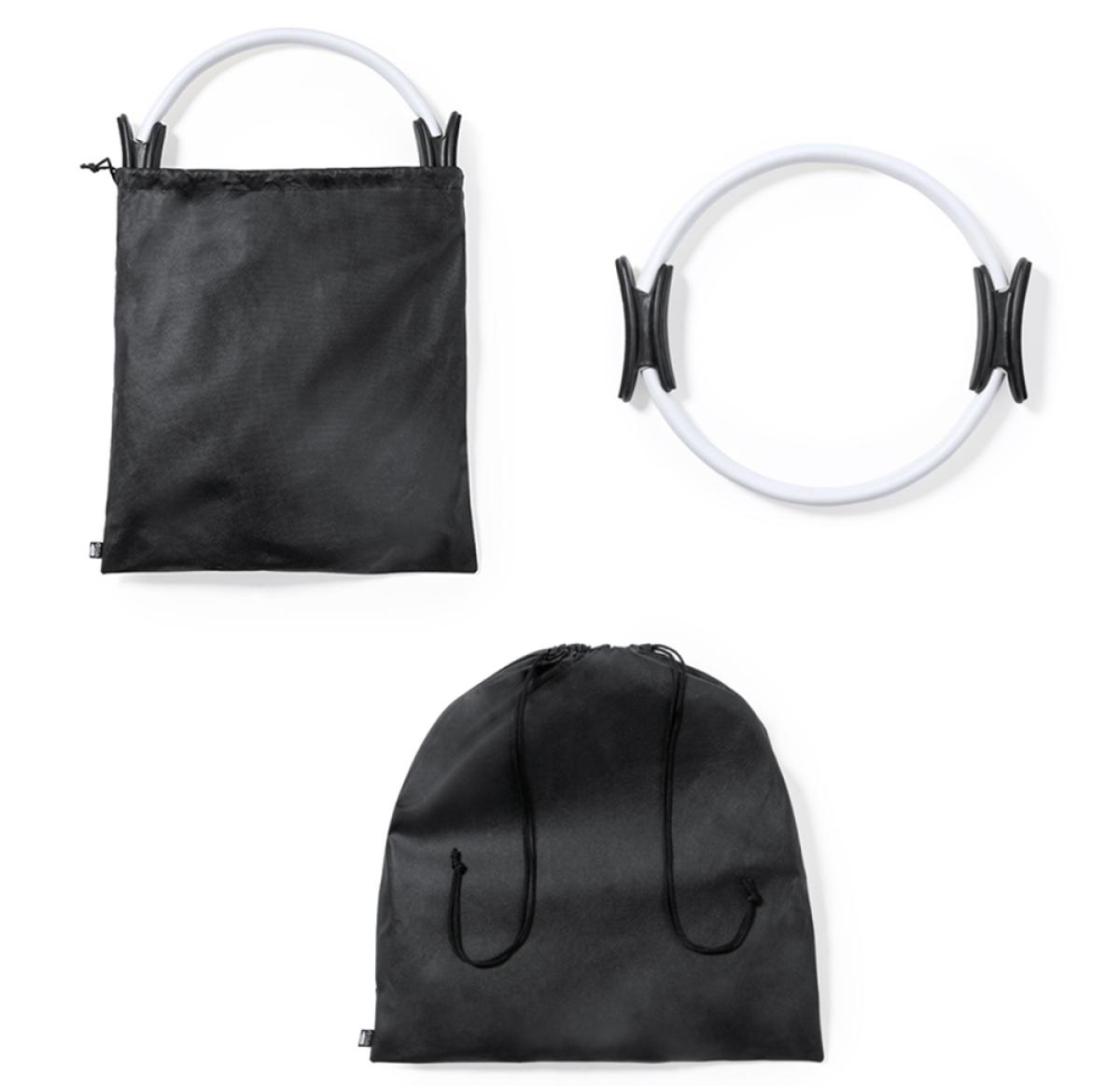 Fitness ring made of durable fibreglass with EVA coating. Ergonomic ABS handles, with instruction manual in English and Spanish. Presented in a non-woven RPET pouch, with drawstring closure and outside label with the RPET distinctive.