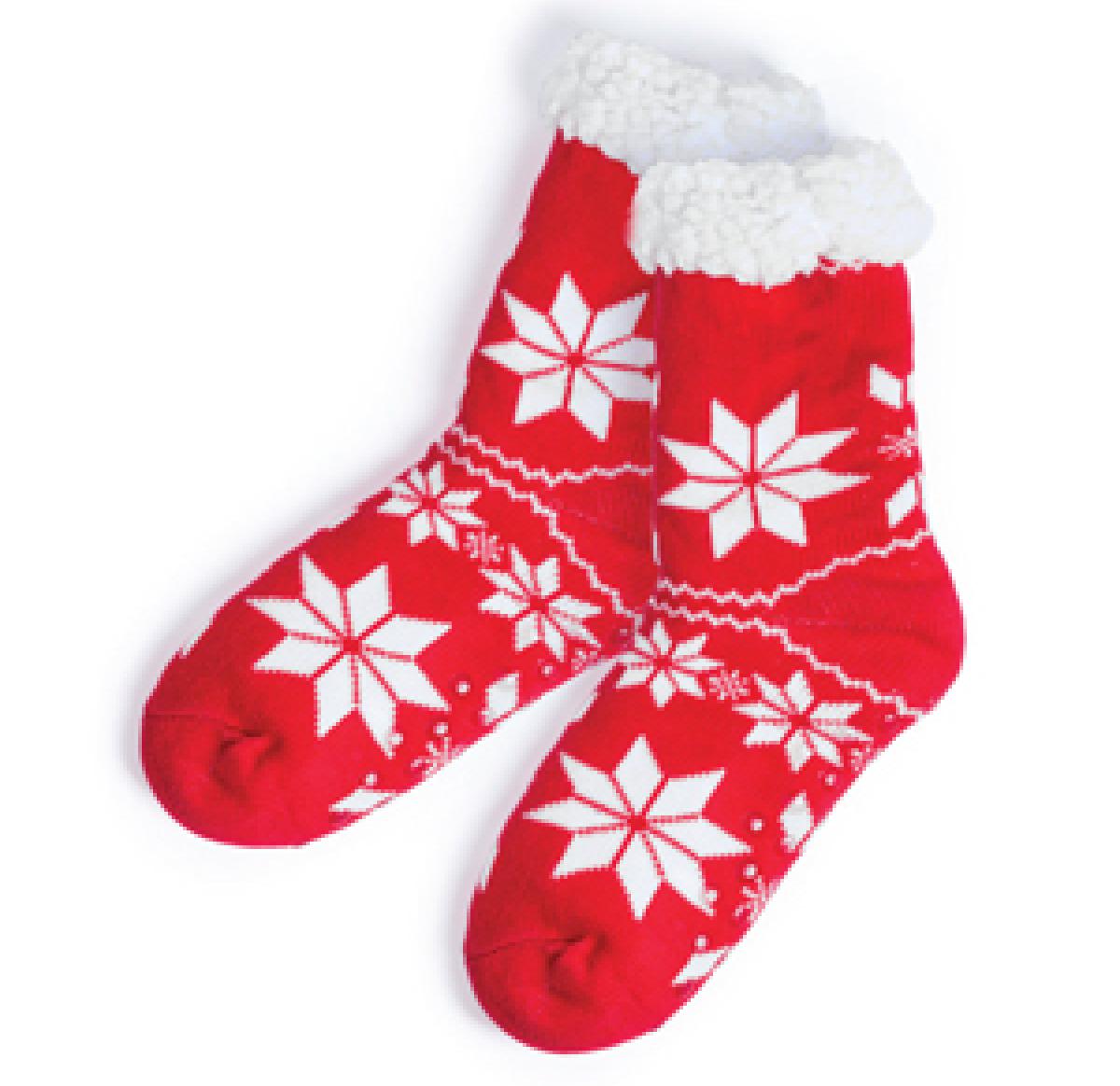 Soft polyester pair of socks with a festive Christmas design and anti-slip pads on the soles. These Christmas themed socks are ideal to keep feet warm during the winter and are available in one size (UK size 4-9).