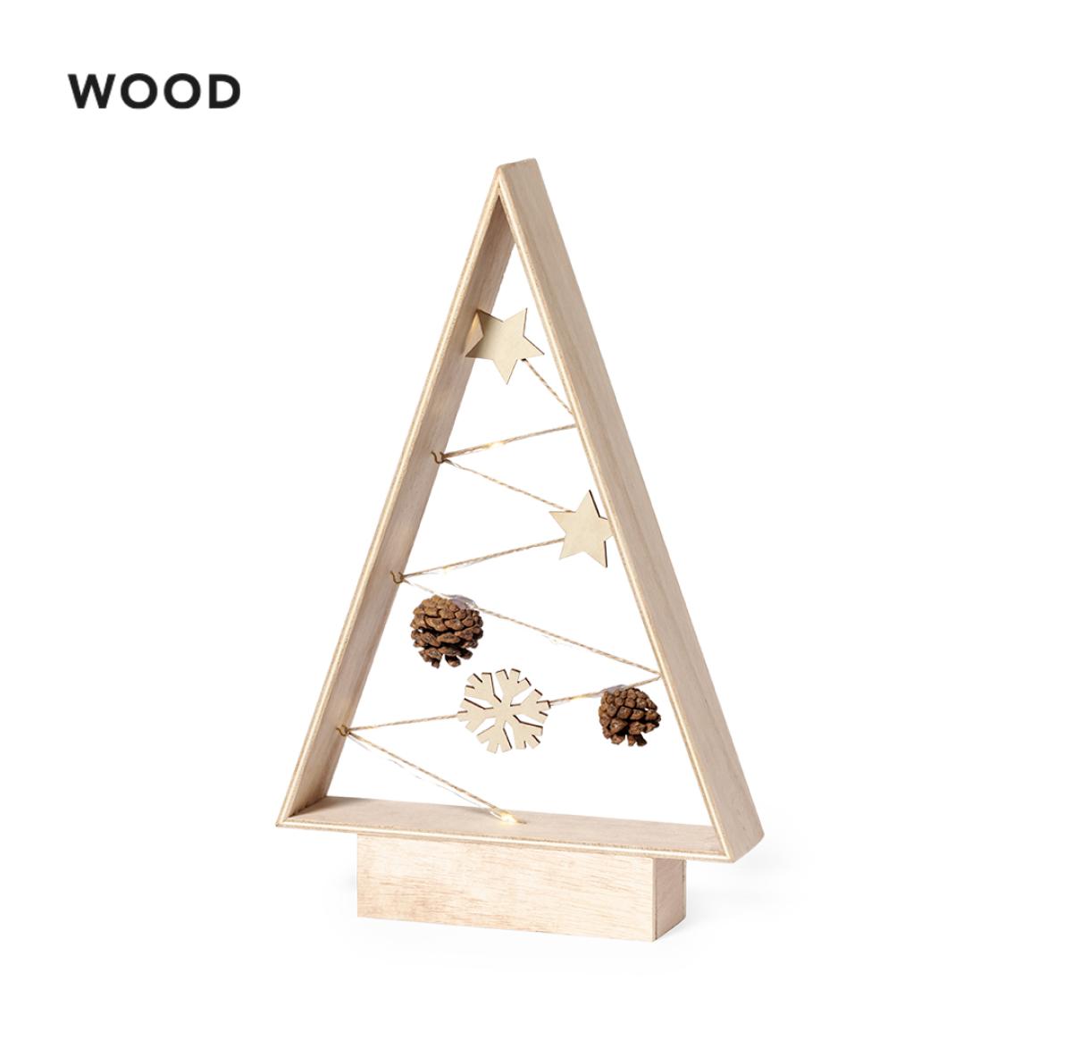 Modern and elegant Christmas tree made of natural wood. An original decorative complement featuring ornaments in natural materials, all of them lit by a braiding of lads, ideal for creating a cozy atmosphere. With an easy manual in English and Spanish. Made with vegetable elements to promote the use of natural raw materials and reduce pollutant emissions. 8 LEDs. Battery powered (2xAAA not included).