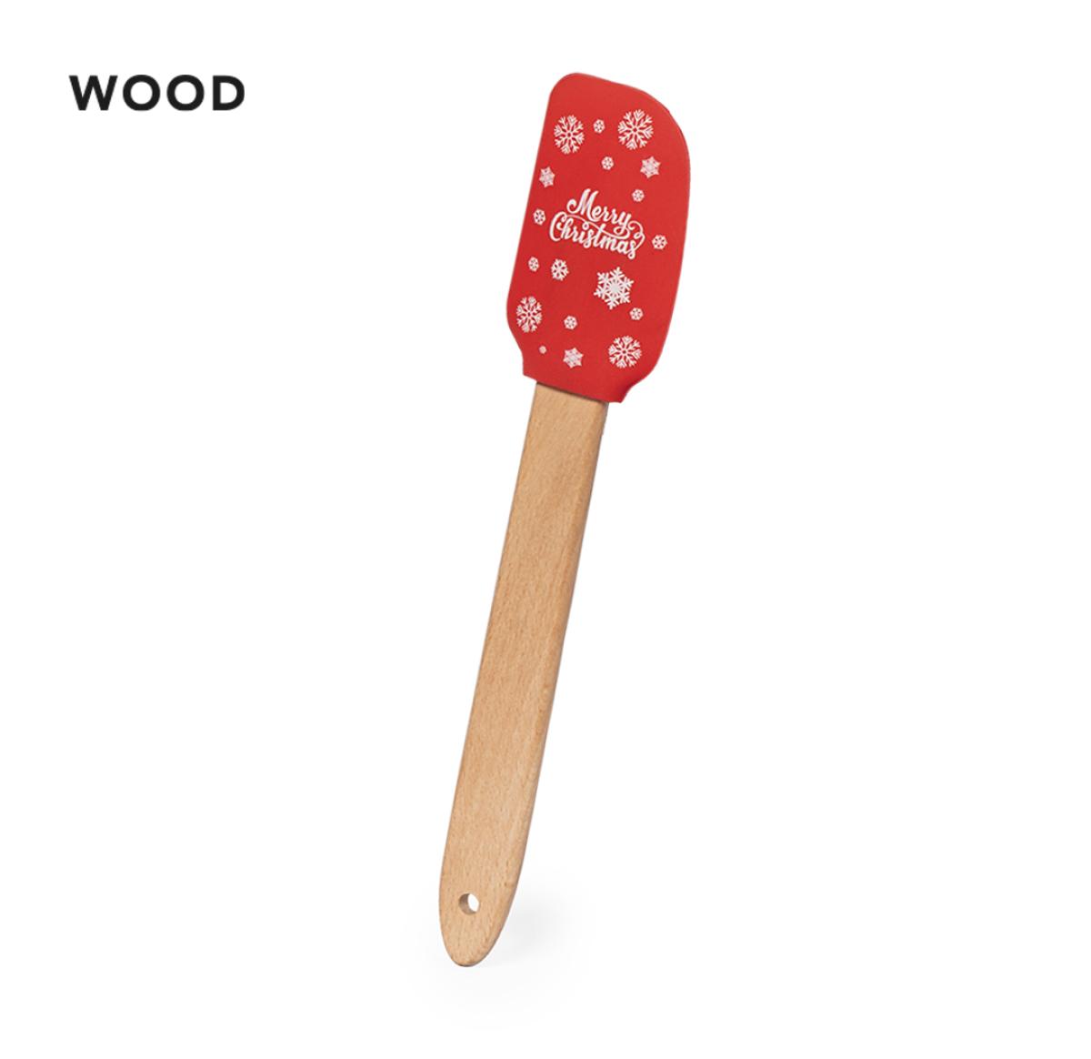 Kitchen spatula with silicone tip and original Christmas motifs. Comfortable handle made in natural wood.