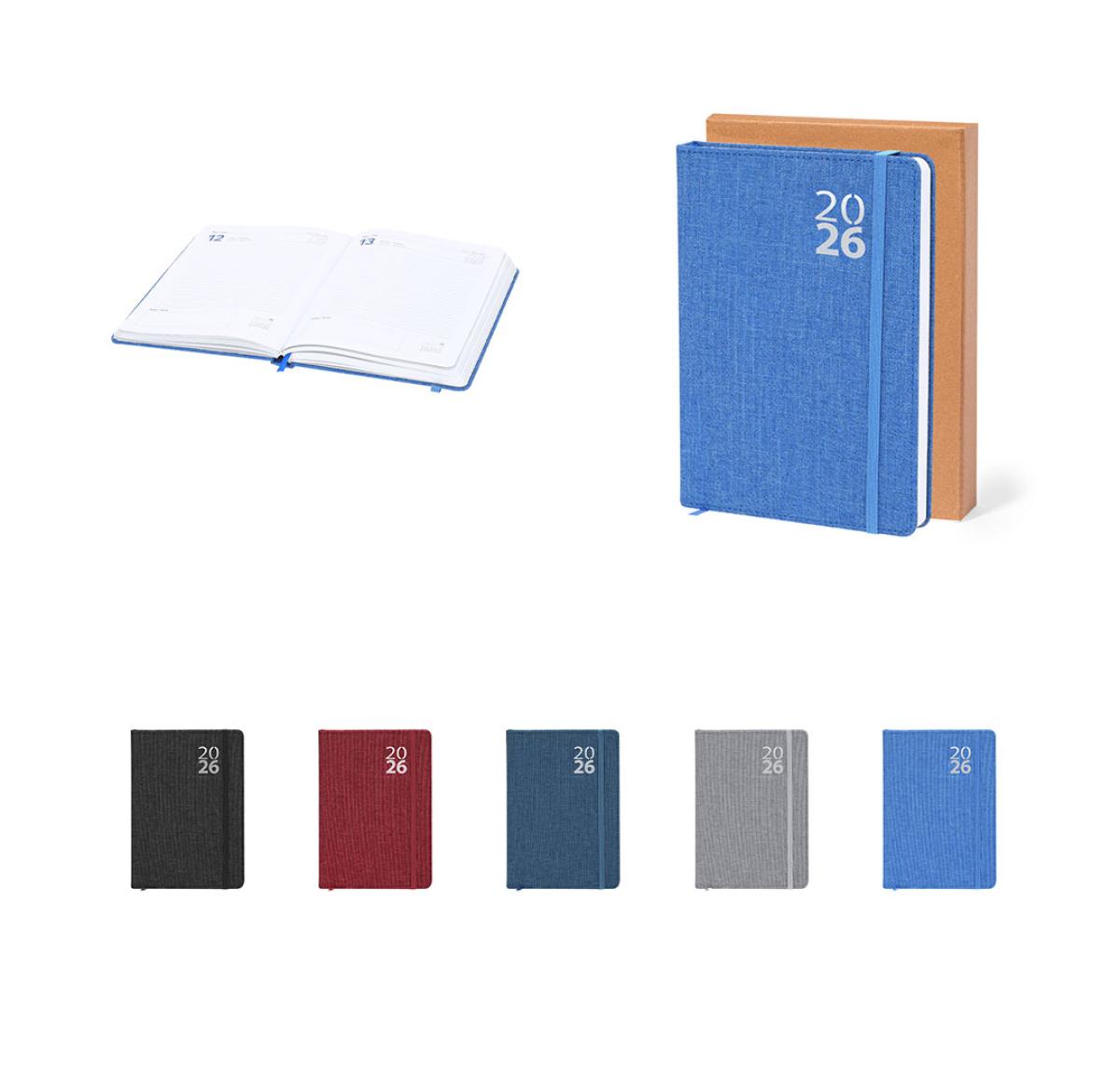 A5 size diary in soft and resistant RPET, with hard covers and elastic band closure. It includes a kraft presentation box and an RPET logo. Day page design, with an area for notes and fabric bookmark. In 2 languages: English and Spanish. PET material is made from recycled plastic, thus promoting the reuse of plastic waste and helping the sustainability of the planet.