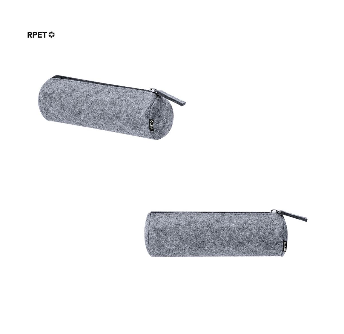 Case made of RPET felt. With zipper closure, matching puller and exterior label with RPET distinction. RPET felt is the result of combining the recycling process of plastic materials with the ancient felt-making technique, resulting in an eco-trend material that, besides being recycled, is also recyclable.