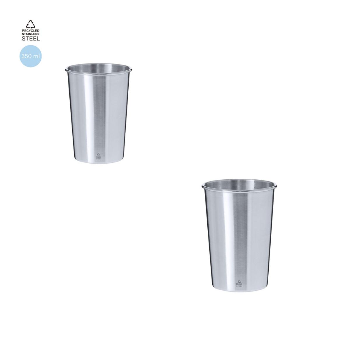 Stainless steel recycled cup with a capacity of 350 ml. With chrome finish. Includes Recycled Stainless Steel label. Steel is one of the most demanded materials and can be found almost everywhere, from daily-use products to large constructions. With countless properties, among which durability and high level of reusability stand out, making it a highly valued alternative in sustainability solutions. Properly treated, it allows obtaining new resources of infinite use.