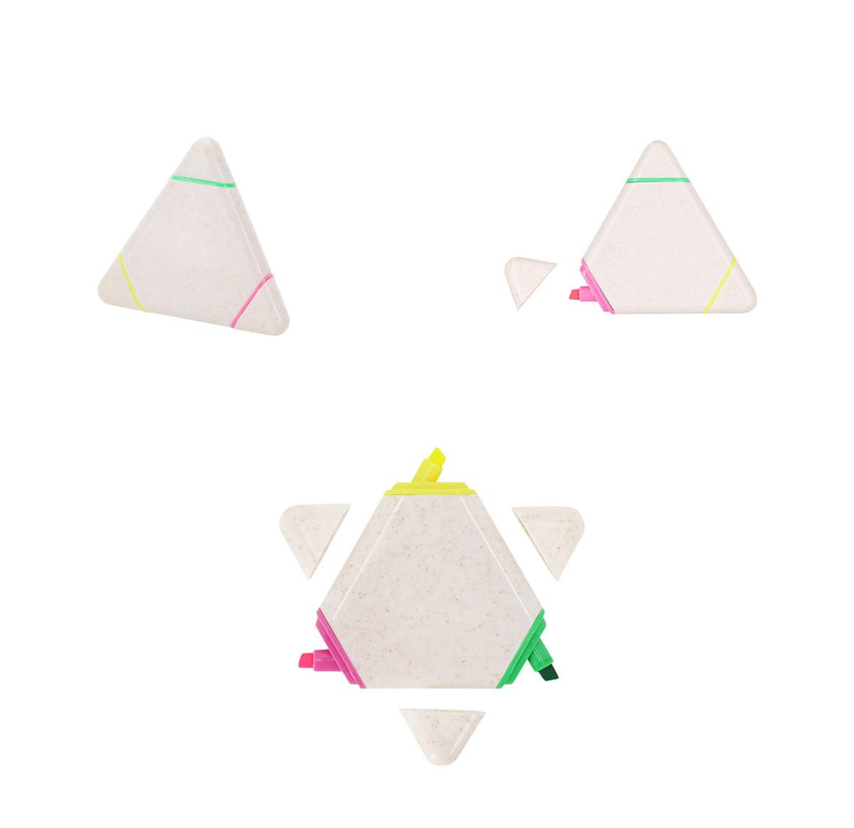 Original fluorescent marker in three colours made of wheat straw. With triangular body in smooth shiny finish, specially designed for full-colour marking. With opaque caps. Wheat straw promotes the use of natural raw materials, thereby reducing polluting emissions.