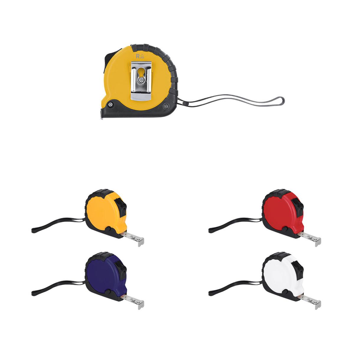 Measuring tape made with RABS 3 metres long with metal blade and locking mechanism. Covered with a protective rubber case, with metal belt clip and carrying strap. With RABS logo on the back. RABS is a highly recyclable plastic with great strength and multiple applications that make it an eco-friendly solution.