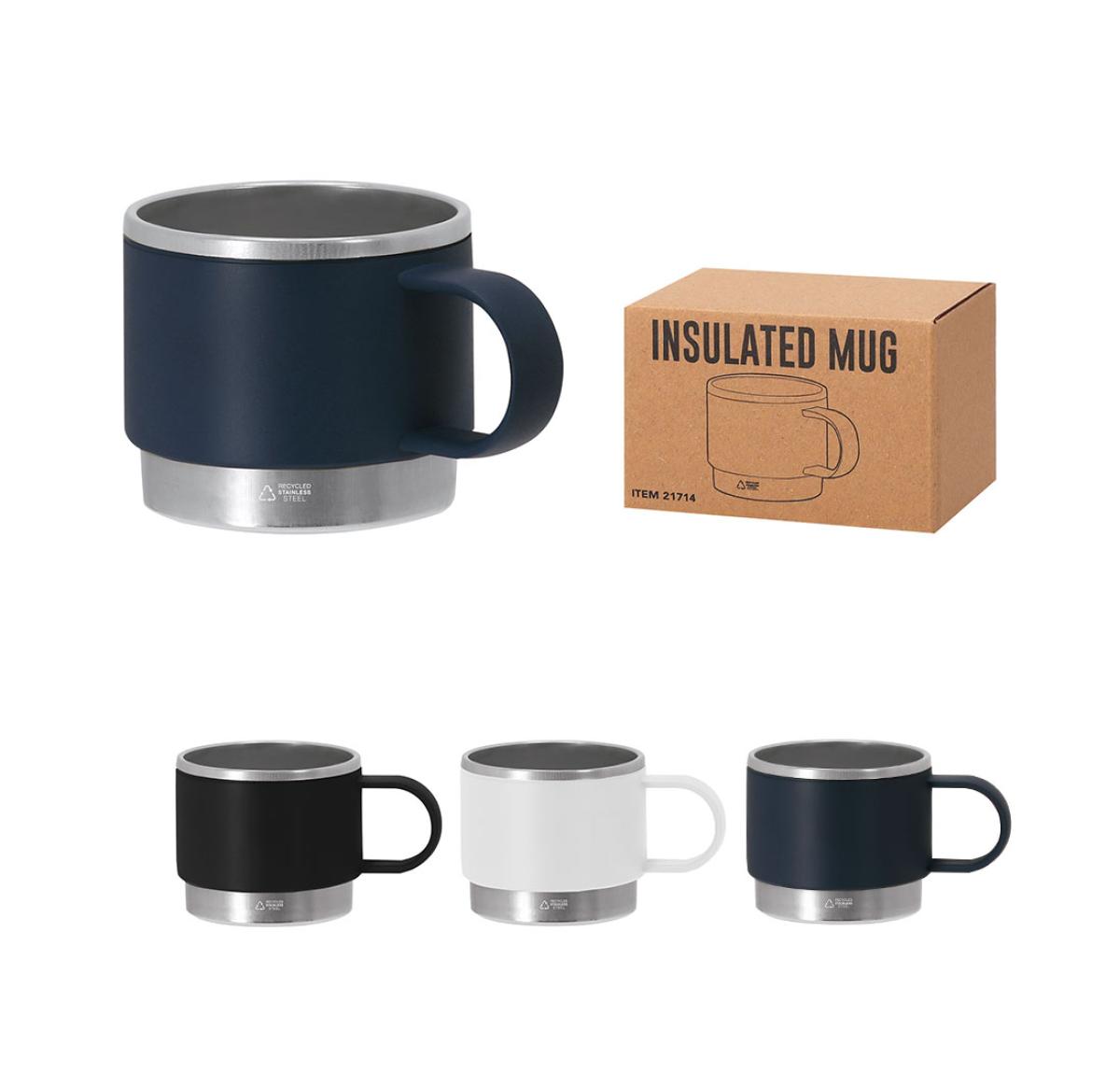 Recycled PP mug, combined with a base of recycled stainless steel. With a capacity of 140 ml. Includes Recycled Stainless Steel designation. Recycled PP is highly recyclable and strong plastic, suitable for many applications. Steel is one of the most demanded materials and can be found almost everywhere, from daily use products to large constructions. With countless properties, including durability and a high degree of reusability, making it a highly valued alternative in sustainability solutions. When properly treated, it allows for obtaining new resources of infinite use.