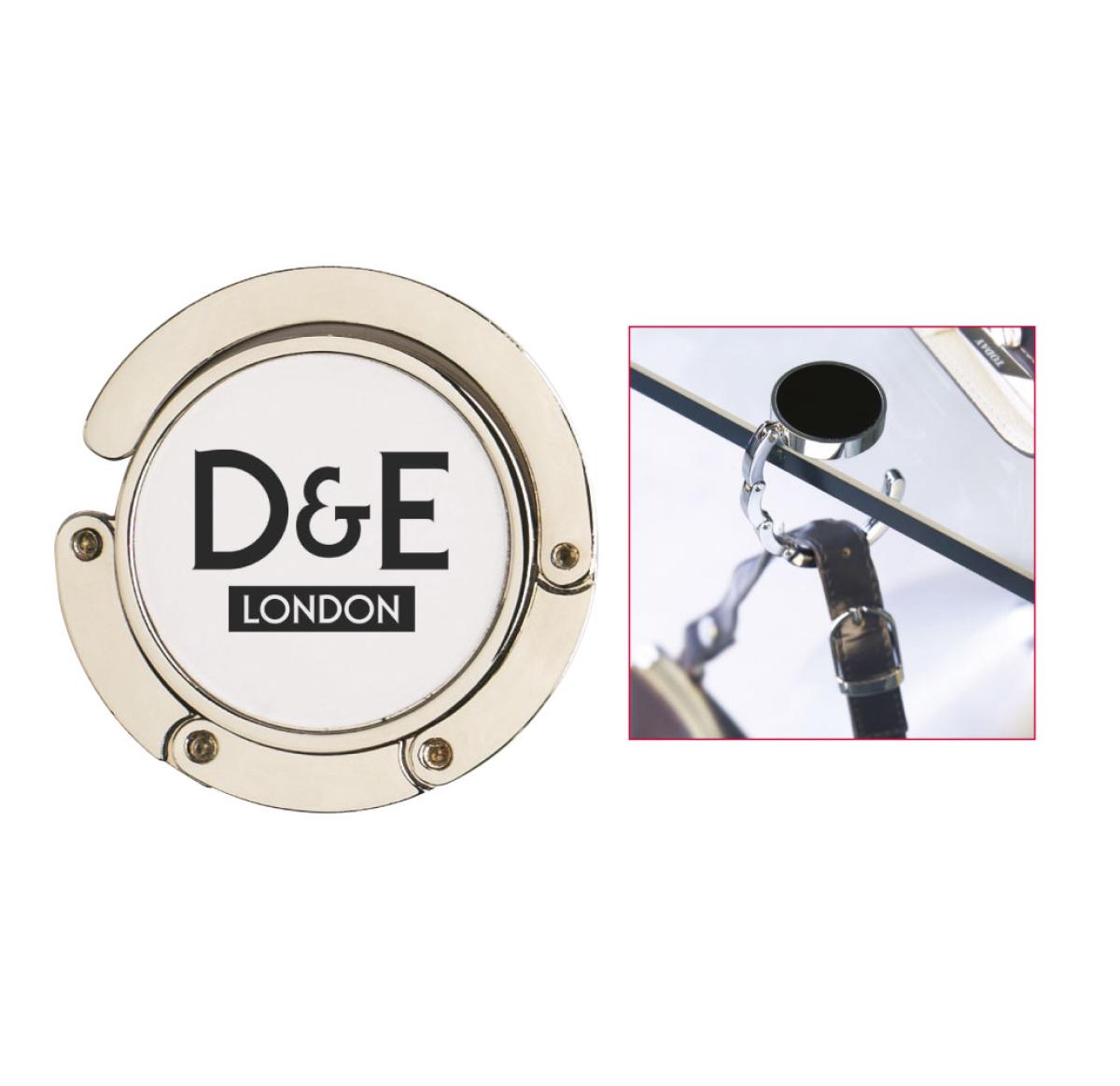 Keep your bag safe with this stylish round metal hanger that discreetly folds away into your bag. Also available with acrylic dome - .