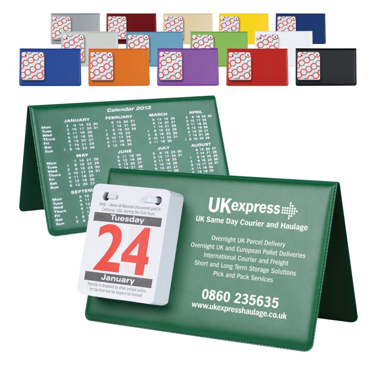Welded desk calendar with daily tear off pages. Includes print on front and back. Individual boxing - POA.