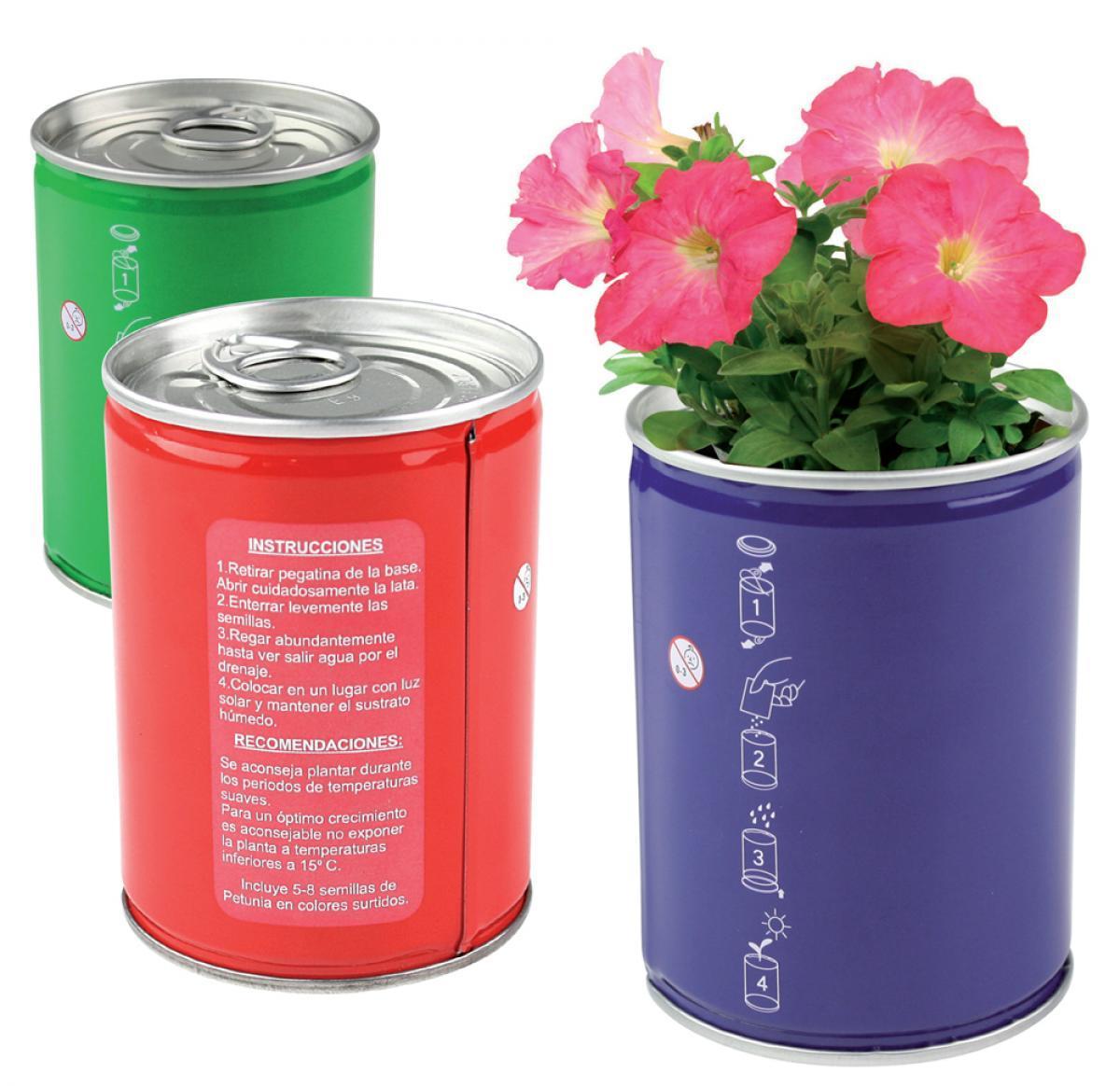 Metal can with mixed petunia seeds.