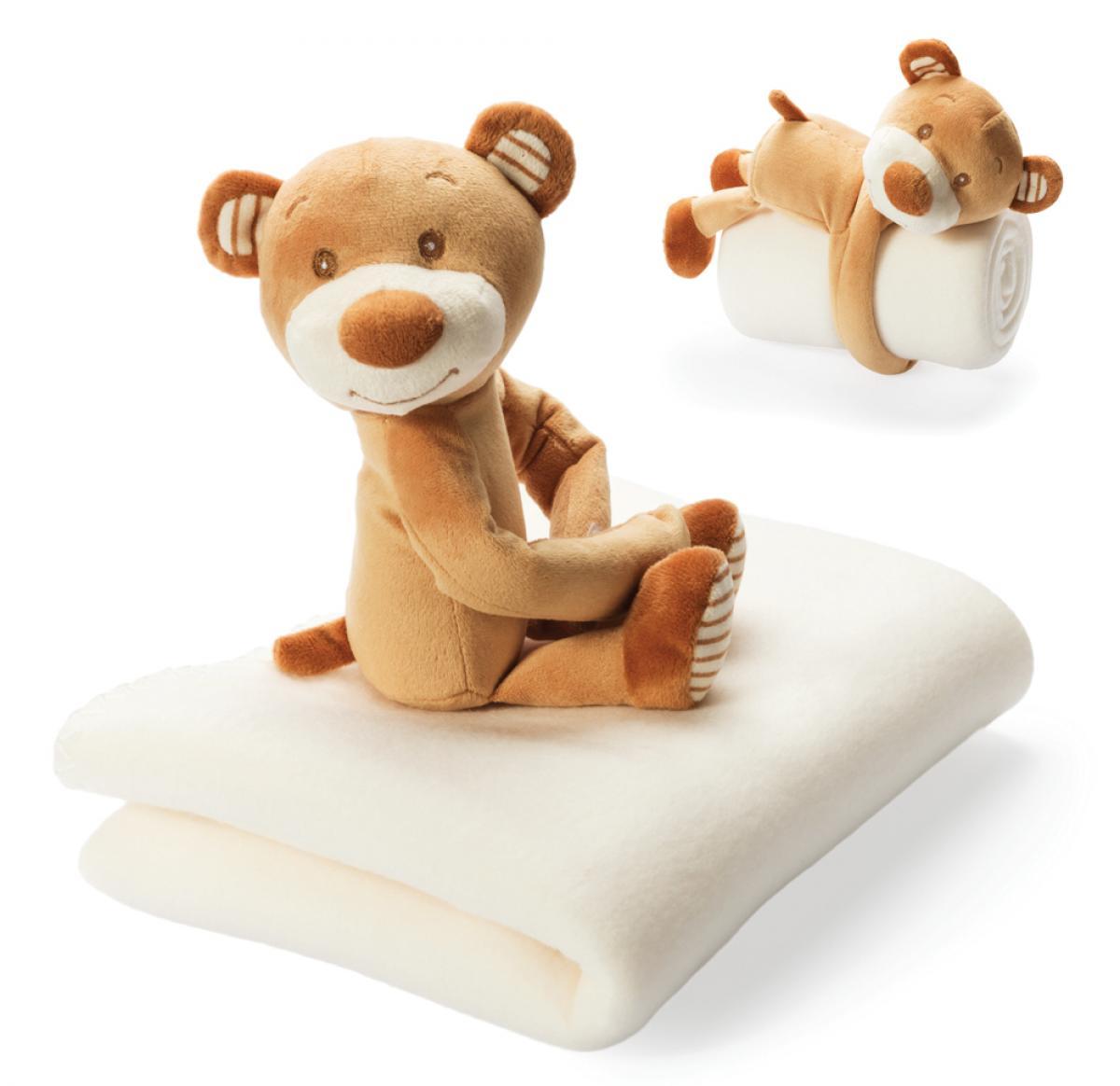 Polar fleece anti-pilling blanket, 200g/m2. Supplied with teddy bear.