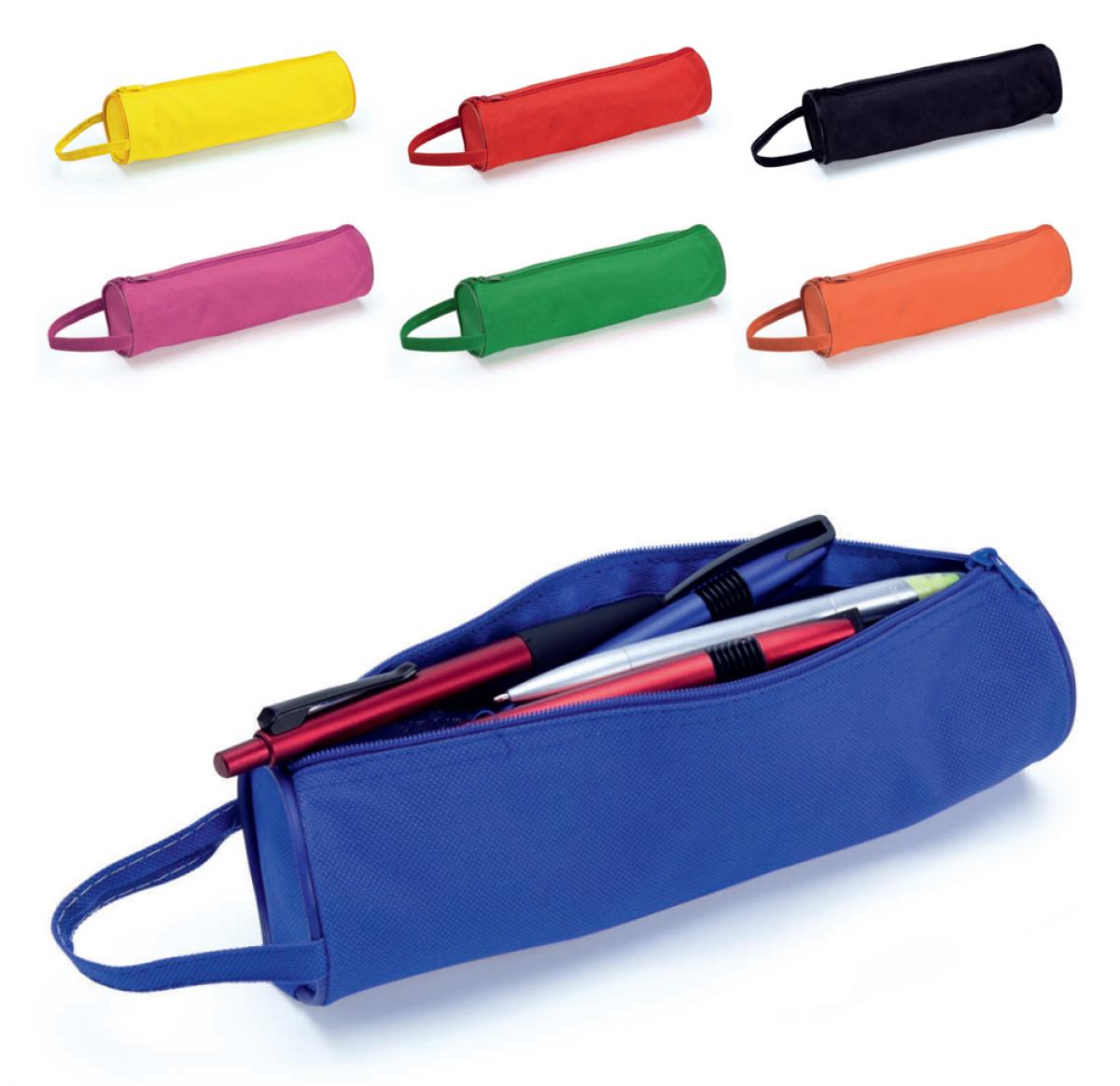 600D polyester zipped tube shaped pencil case with carrying handle.