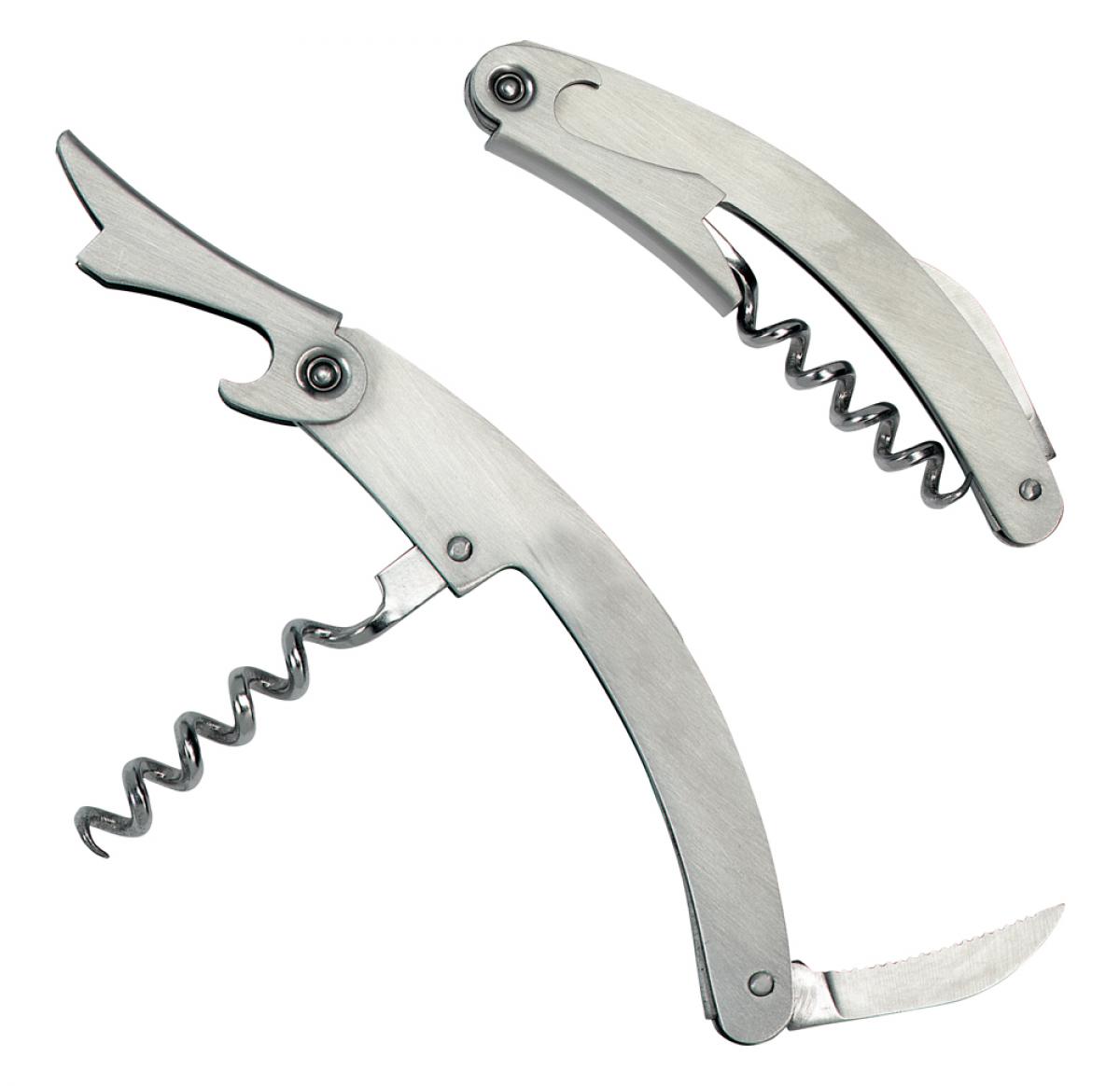 Durable stainless steel waiters knife with corkscrew, bottle opener and knife.