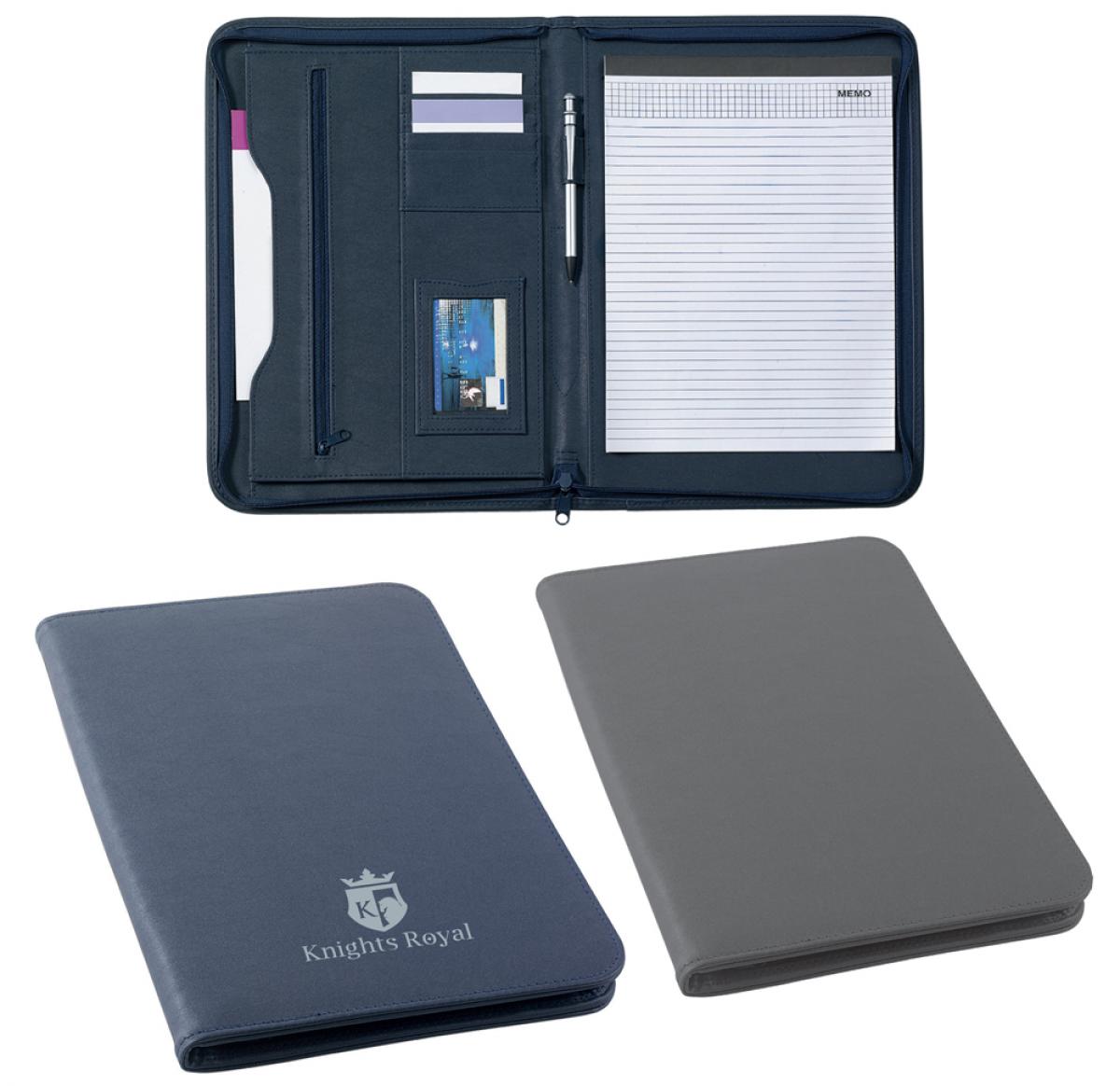 Zipped A4 conference folder in a PU Leather look material. Includes: Business card pockets, document pockets and pen loop. (Pen and notepad excluded)
