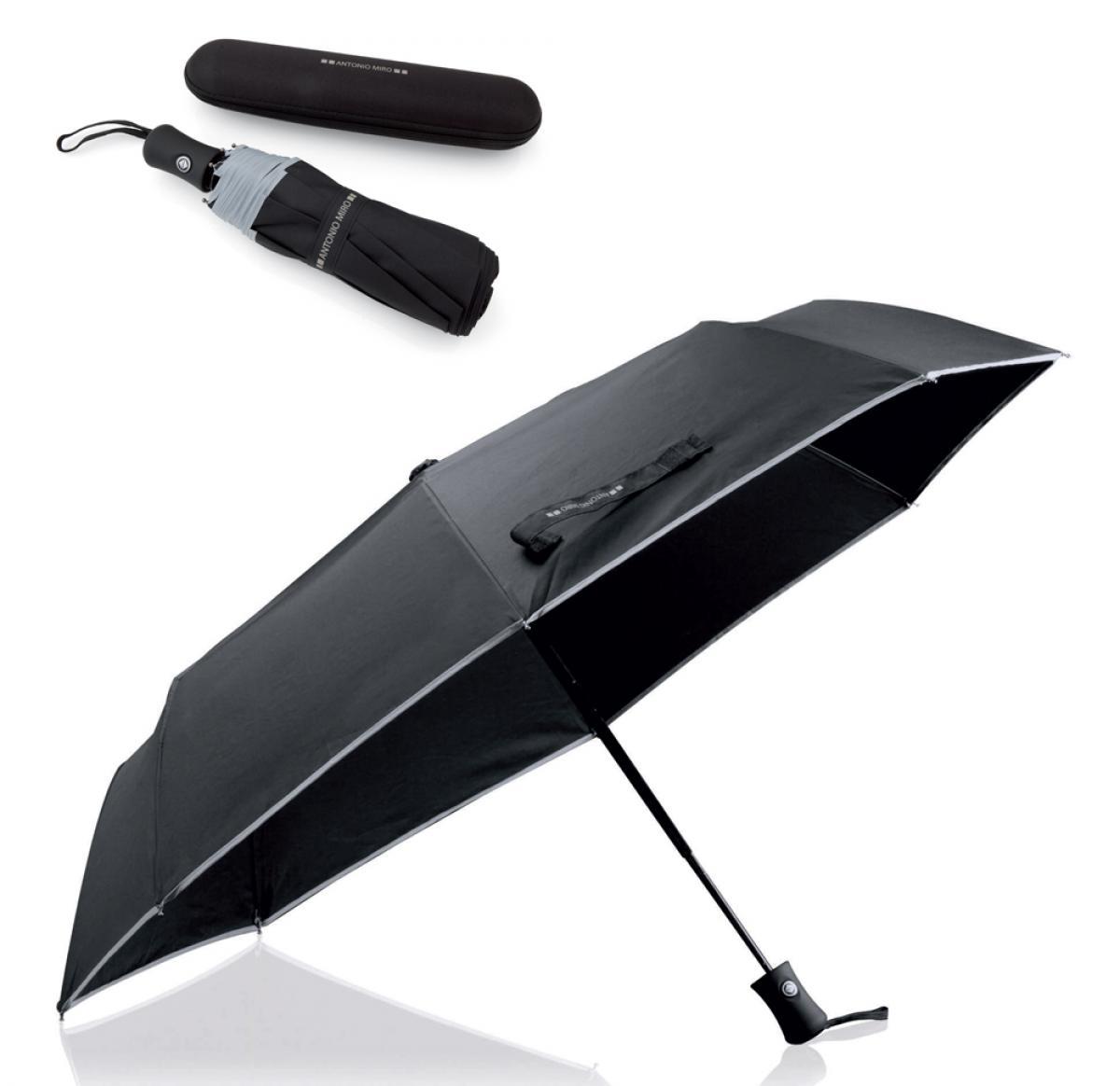 Compact automatic, windproof umbrella made from Pongee, with 1m diameter canopy and carry case.