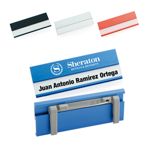 Name badge with safety pin fastening.