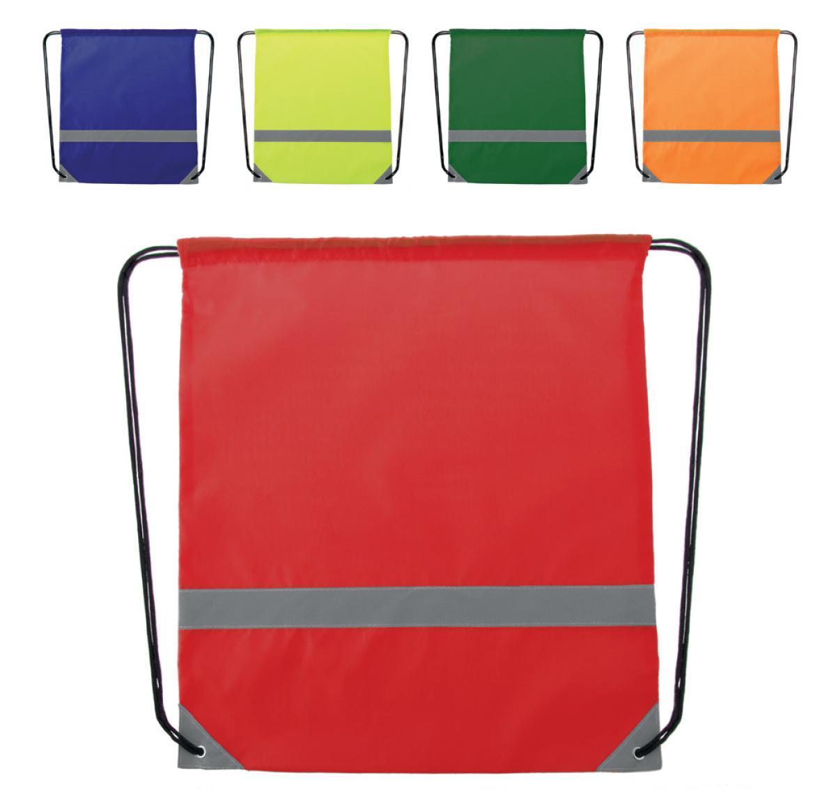 Drawstring rucksack made from 190T Polyester with high visibility reflective strip and reinforced corners.