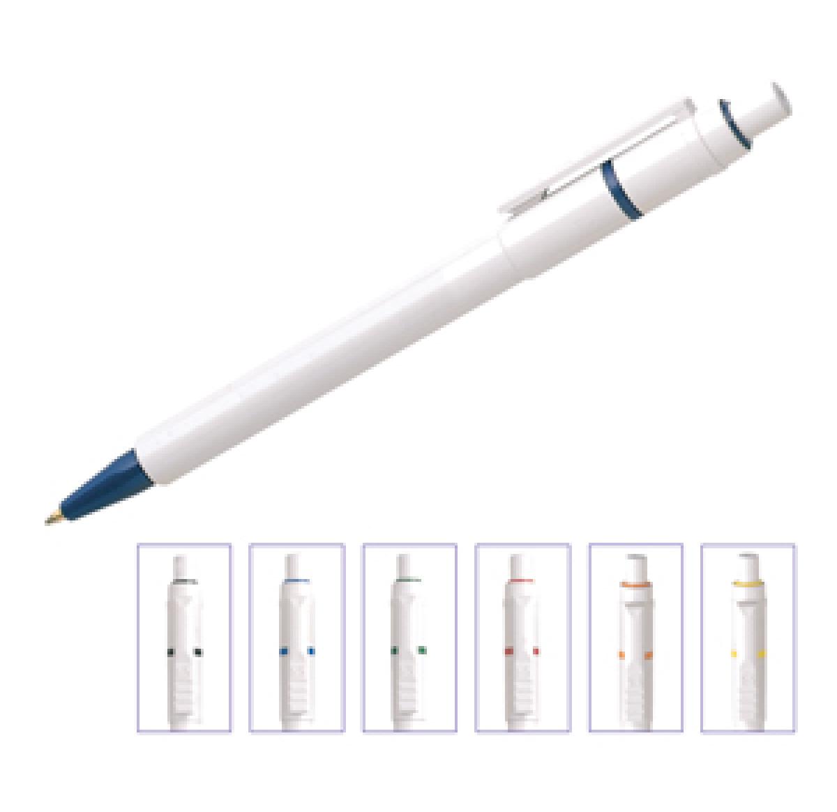 Popular baron ballpoint pen with white barrel, coloured trim and excellent print area.