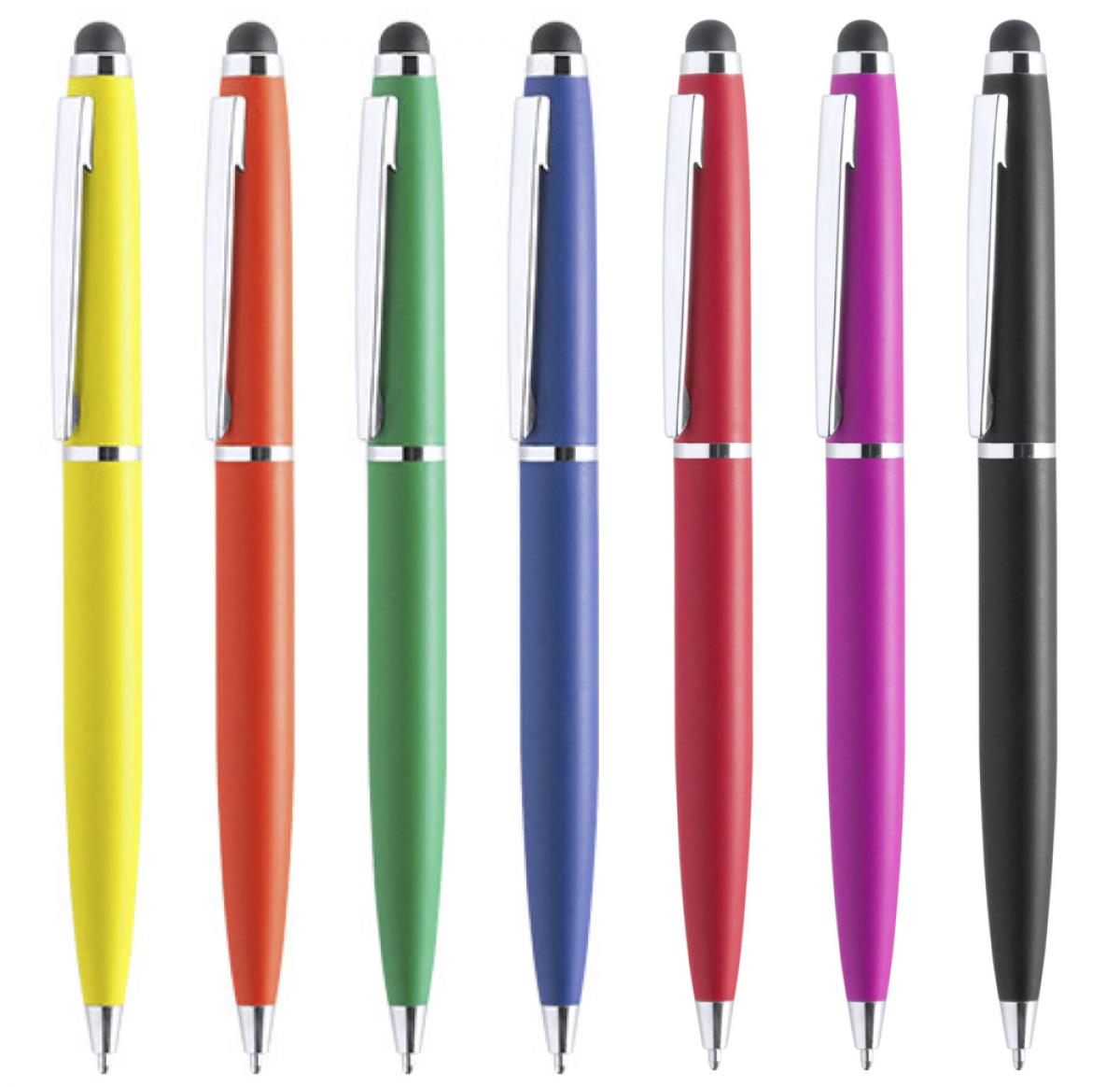 Aluminium twist action ballpoint pen with touch screen stylus. Blue ink.