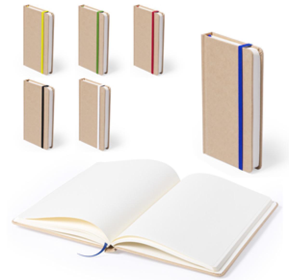 A6 Natural colour hard cover notepad with 100 plain sheets, elastic closure and page marker.