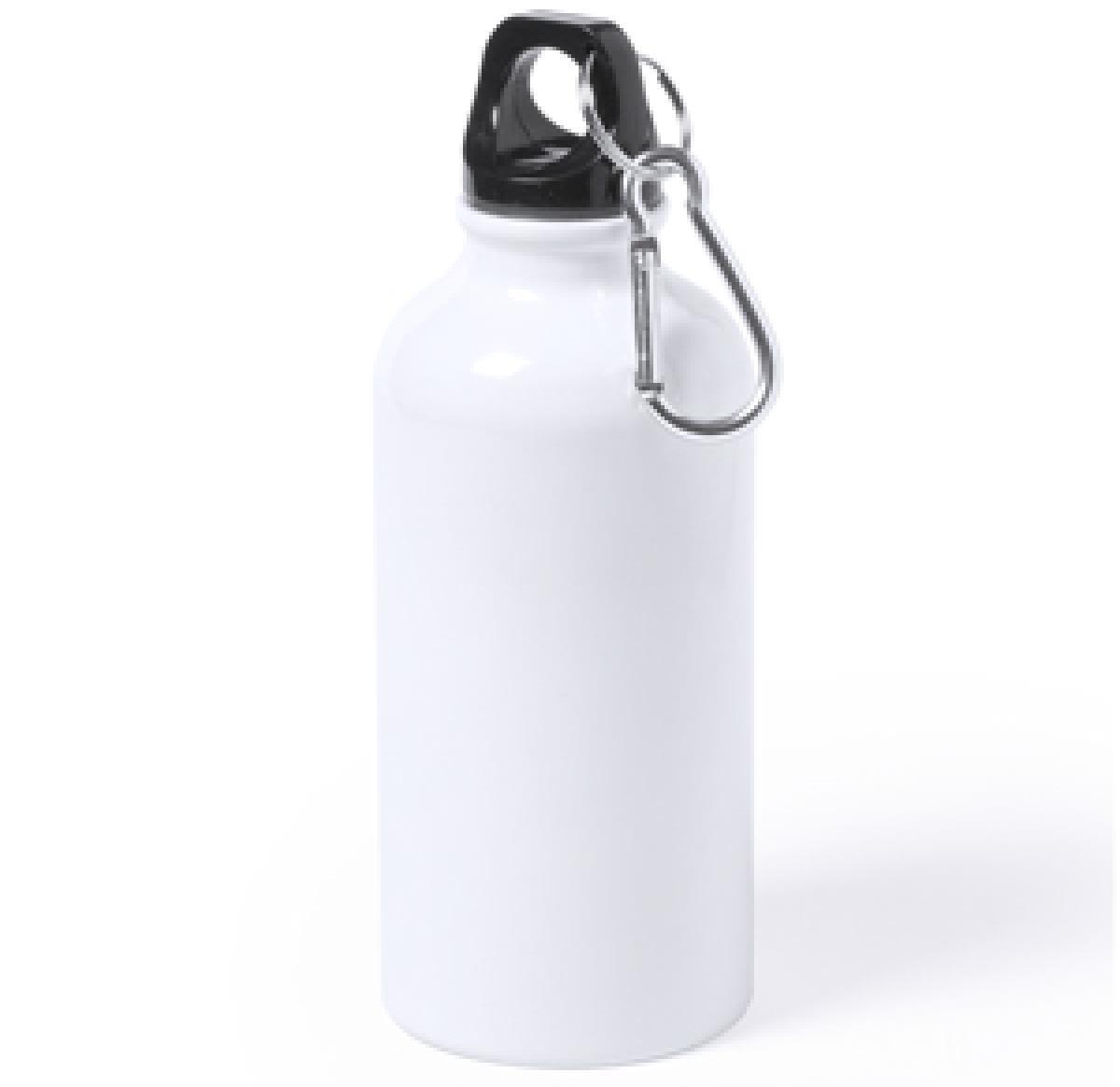 Aluminium 400ml drinks bottle with screw lid and carabineer clip. Supplied boxed. Ideal for sublimation print.