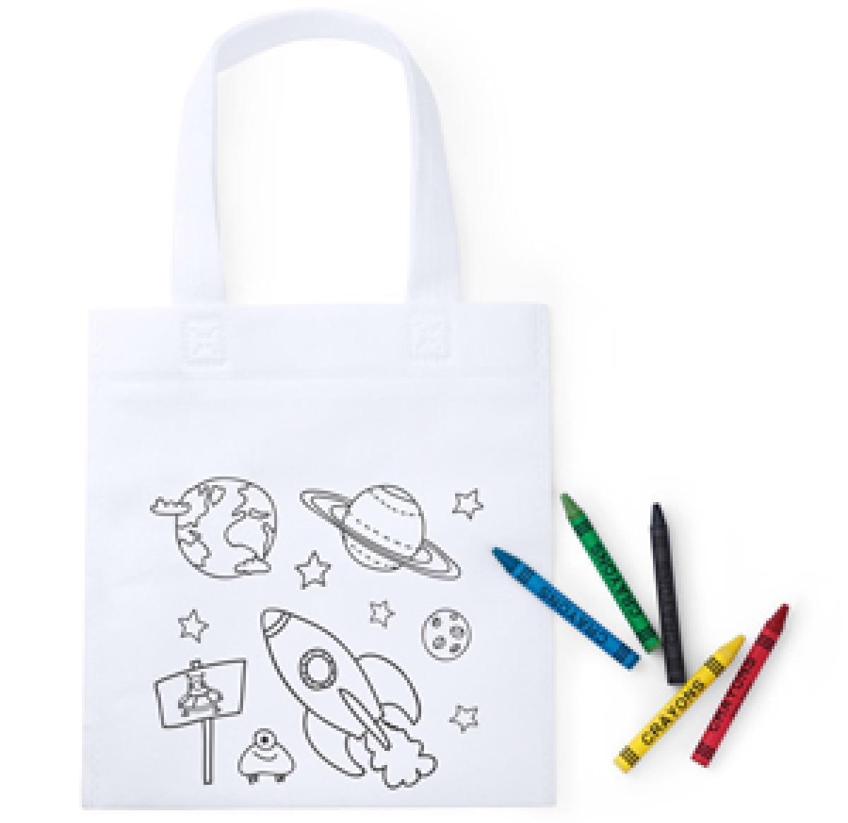 Non-Woven children's colouring bag with five crayons.