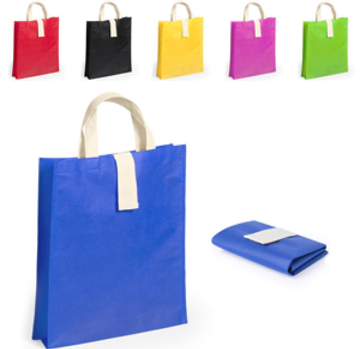 Short handled non-woven foldable shopping bag. Supplied in a range of colours.